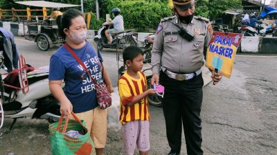 Polisi Bagikan Masker Gratis Upaya Untuk Mengedukasi Pentingnya Masker Dimasa PPKM