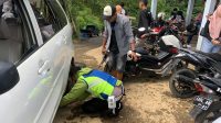 <em>Kabid Humas Polda Jabar : Berikan Pelayanan Prima, Polisi Bantu Wisatawan Mengganti Ban Bocor</em>