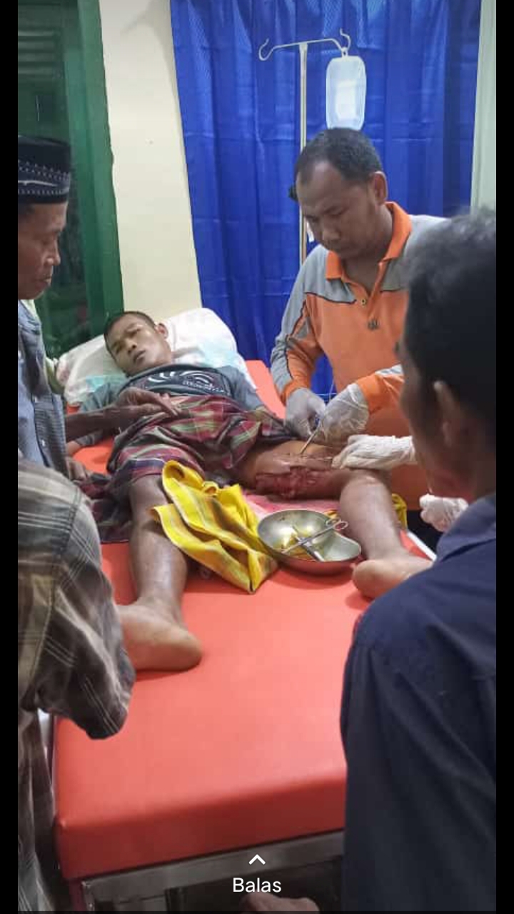 Saat ini, korban di bawah ke Puskesmas Pulau Temiang Kecamatan Tebo Ulu untuk mendapati pertolongan pertama, luka robek bekas gigitan predator, terlihat menganga lebar dengan 40 jahitan.