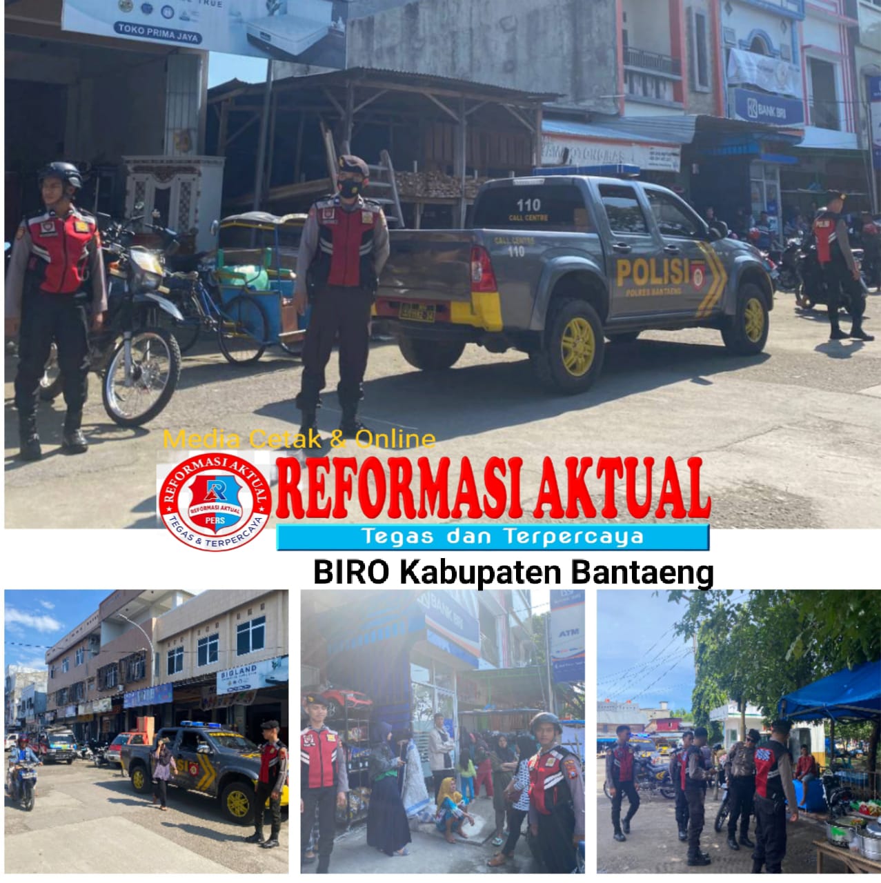 BANTAENG – reformasiaktual.com – Satuan Samapta Polres Bantaeng Polda Sulsel menurunkan personelnya melaksanakan patroli di Pasar Sentral Bantaeng dan Pertokoan, senin (10/4/2023)