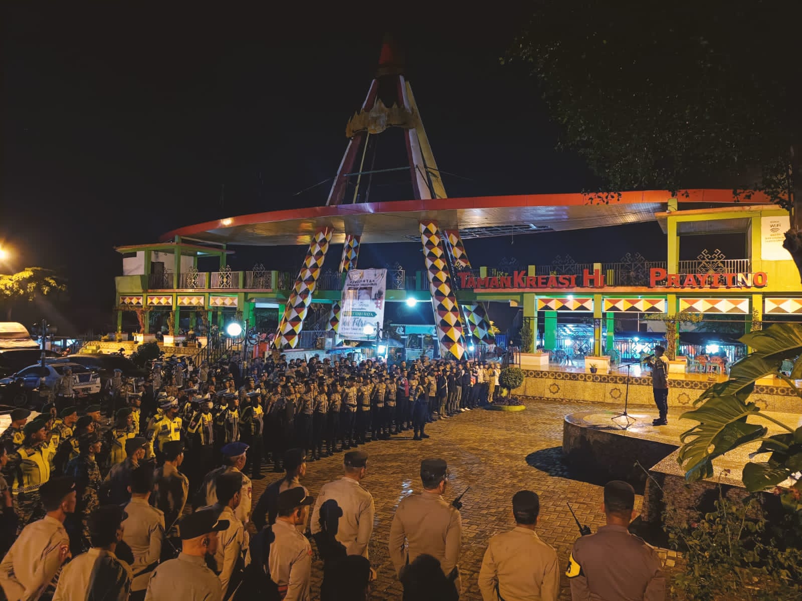 Tanggamus,Reformasiaktual.com – Tanggamus – Ratusan personel gabungan Polres Tanggamus bersama TNI, Pol PP, Dishub dan Dinkes diterjunkan dalam pengamanan malam takbir perayaan Idul Fitri 1444 H, apel tersebut digelar di Rest Area Gisting, Tanggamus, Jumat 21 April 2023 malam.