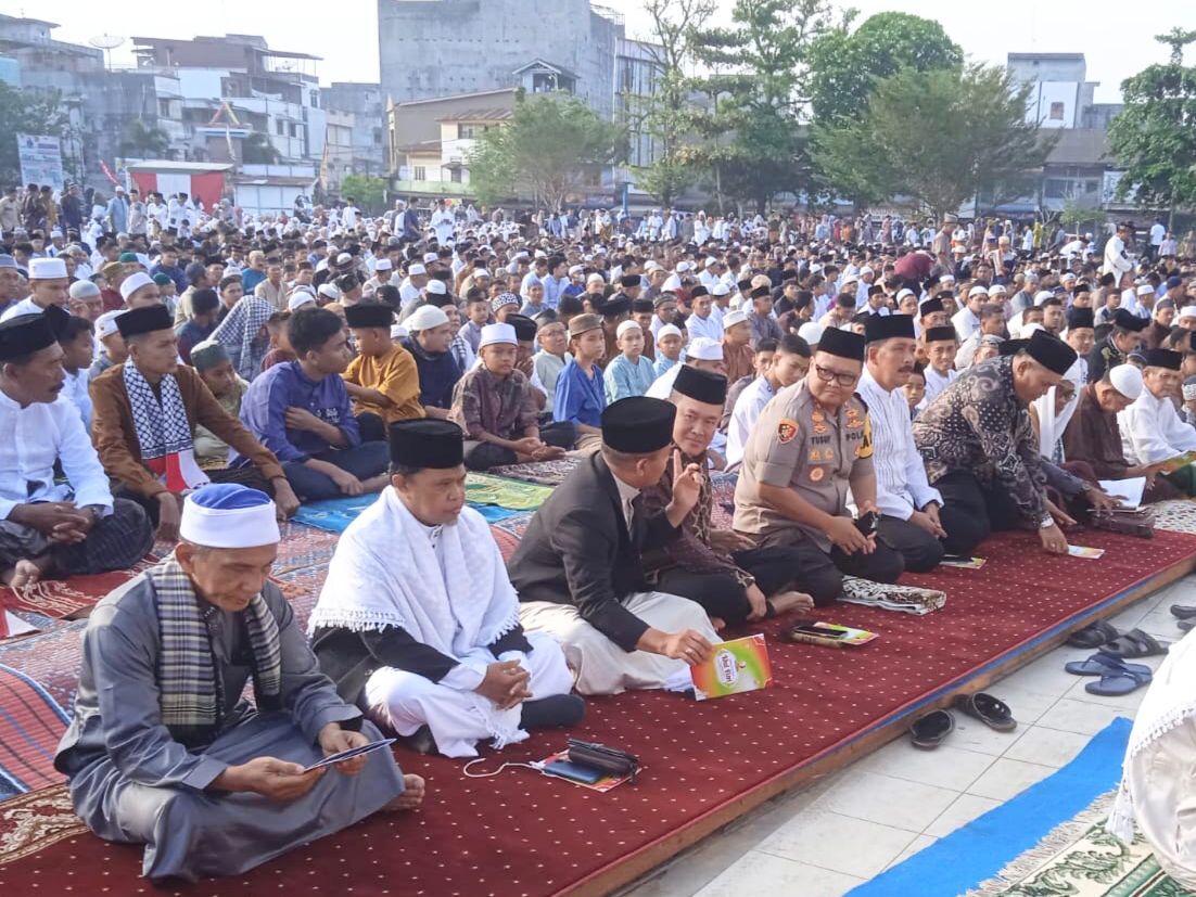 Reformasiaktual.com//TANJUNG BALAI Kapolres Tanjung Balai AKBP. Ahmad Yusuf Afandi, S.I.K., M.M beserta Forkopimda Kota Tanjung Balai melaksanakan Sholat Idul Fitri 1444-H/ 2023-M bersama warga masyarakat di lapangan Sultan Abdul Jalil Rahmadsyah Jl. Pahlawan Kel. Pantai Burung Kecamatan Tanjung Balai Selatan Kota Tanjung Balai, Sabtu (22/04/2023) pukul 07.00 wib.