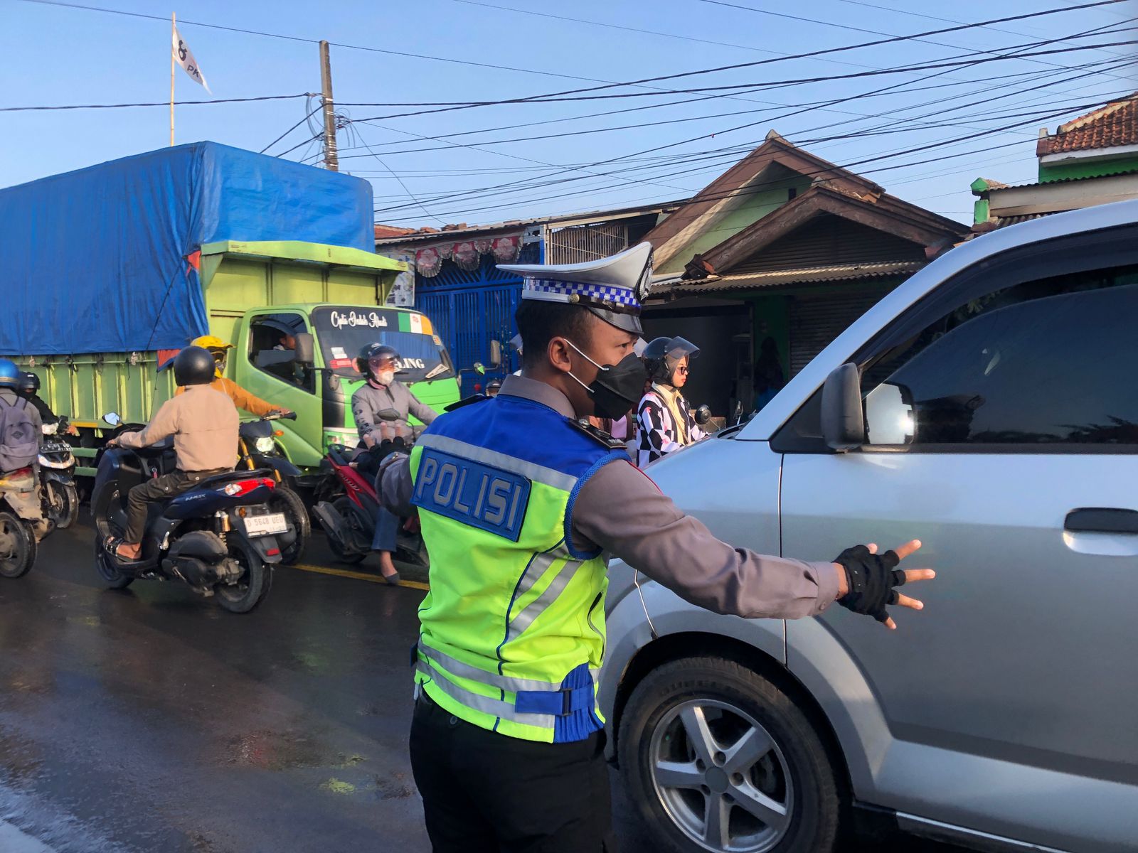 Anggota Lantas Polsek Batujajar Polres Cimahi Pastikan Arus Lalu Lintas Pagi Tetap Lancar