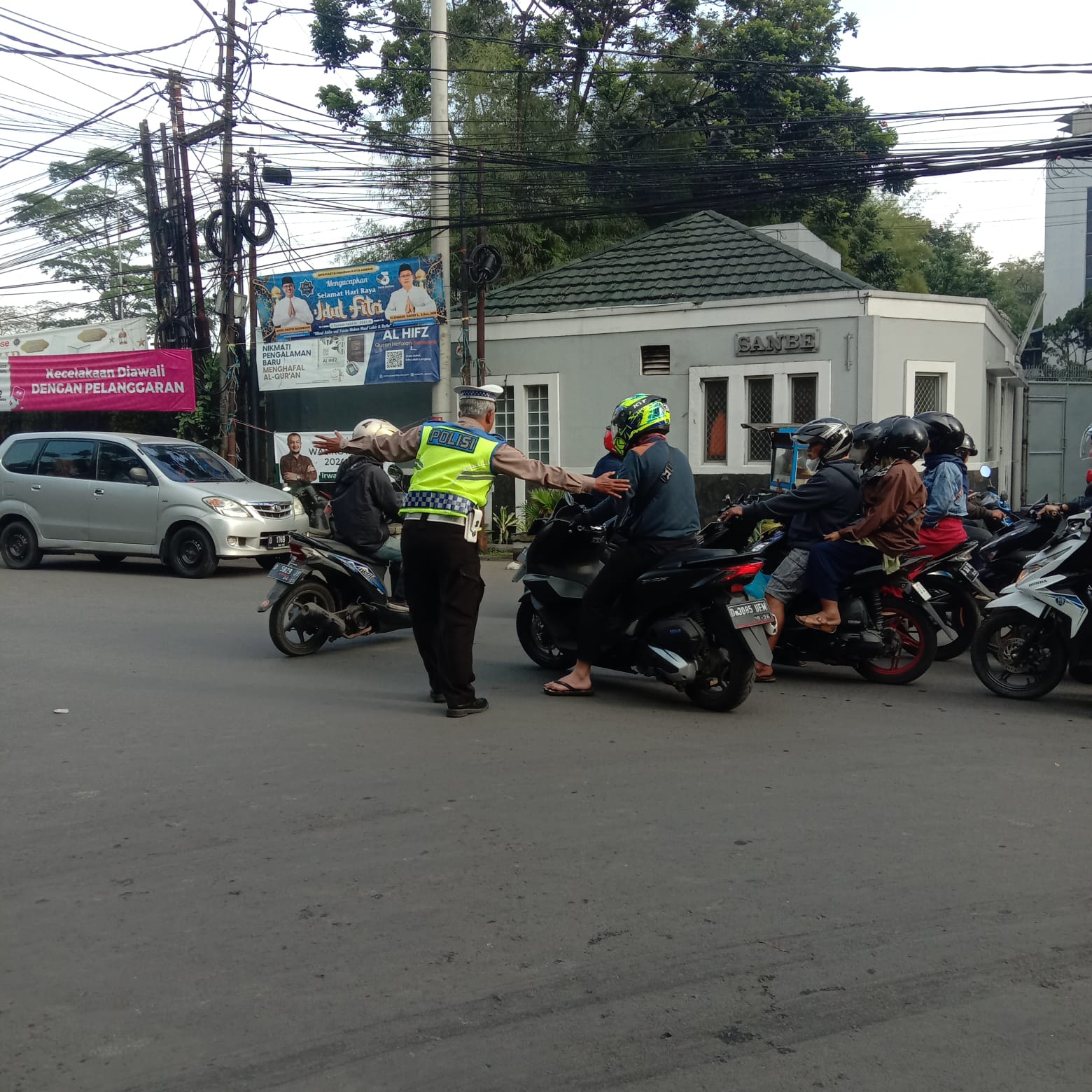 AIPDA Adi,BRIPKA Randy,AIPTU Napitupulu, AIPTU Wawan, AIPTU Rudi Dengan melaksanakan pengaturan lalulintas pagi di Pos1 PTG Cibaligo Dalam,Pos 2 Smkn 1 Cimahi , Pos 3, PTG Industri