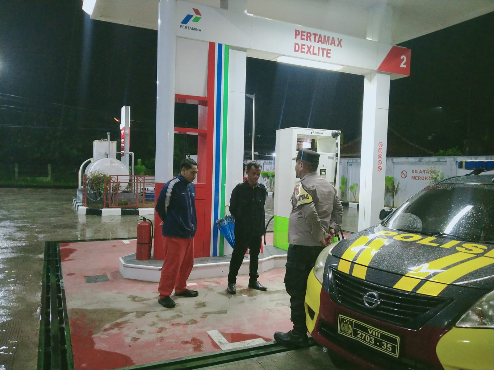 Unit Sabhara Polsek Rengasdengklok Laksanakan Patroli Prekat Malam Dan Memberikan Himbauan Kamtibmas kepada Karyawan SPBU