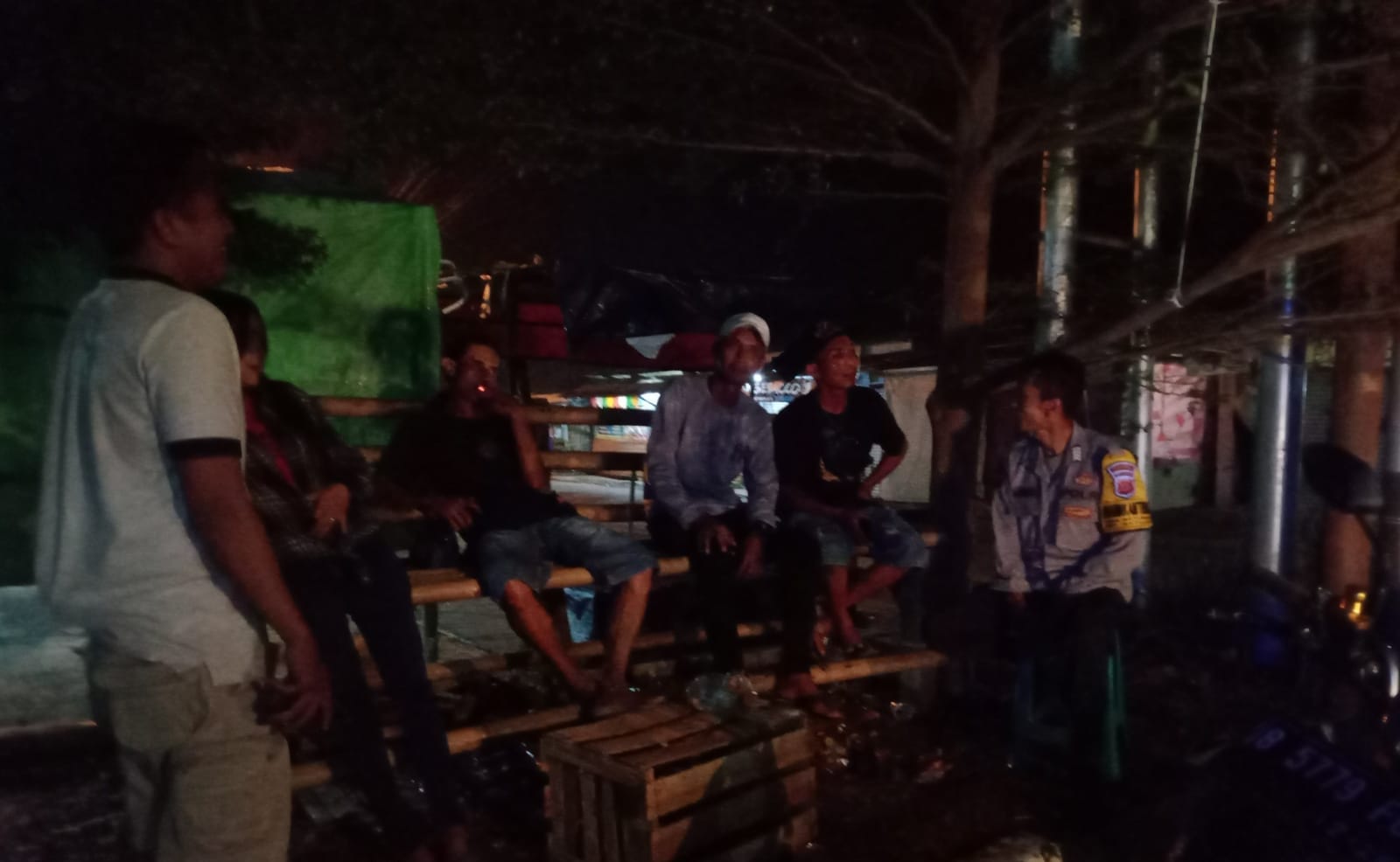 Polres Karawang Polda Jabar – Tingkatkan Harkamtibmas, anggota Polsek Batujaya Polres Karawang Aiptu Asep dany Kusnadi dan Bripka Ahmad Sanjaya ngawangkong bersama warga Dusun Krajan Rt 02/01 Desa Batujaya Kecamatan Batujaya, Karawang, Senin dini hari (8/5/2023).