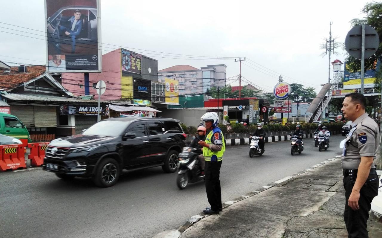 Anggota Sat Lantas Polres Cimahi Sigap Mengurai Kepadatan Kendaraan Di Jalur Lembang