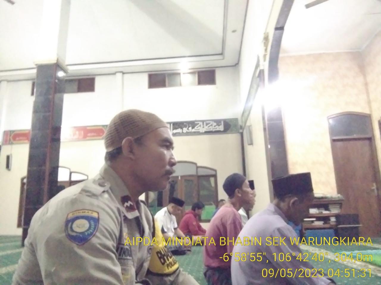 Warungkiara – anggota jaga piket Mako Aipda Atta laksanakan giat safari subuh atau solat subuh berjamaah di masjid Miftahul Huda kecamatan Warungkiara (09-05-2023).