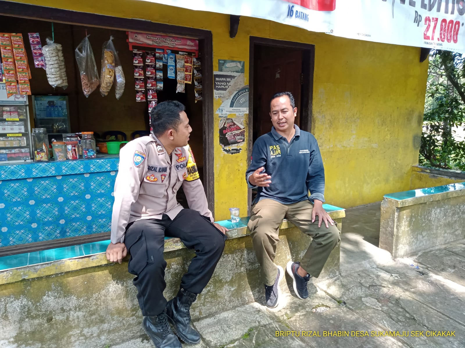 Polsek Cikakak-Polres Sukabumi dalam rangka harkamtibmas memberikan rasa aman semua lapisan masyarakat pada Senin/08-05-2023 pukul 08.00 Wib Briptu Rizal ilhami jarkasih Salam Bhabin Desa Sukamaju, melaksanakan kegiatan sambang dan silaturahmi kepada warga di wilayah tempat tugas warga Istri alm. Bapak Kamat di Kp. Tenjo Laut Ds. Sukamaju Kec. Cikakak Kab. Sukabumi.