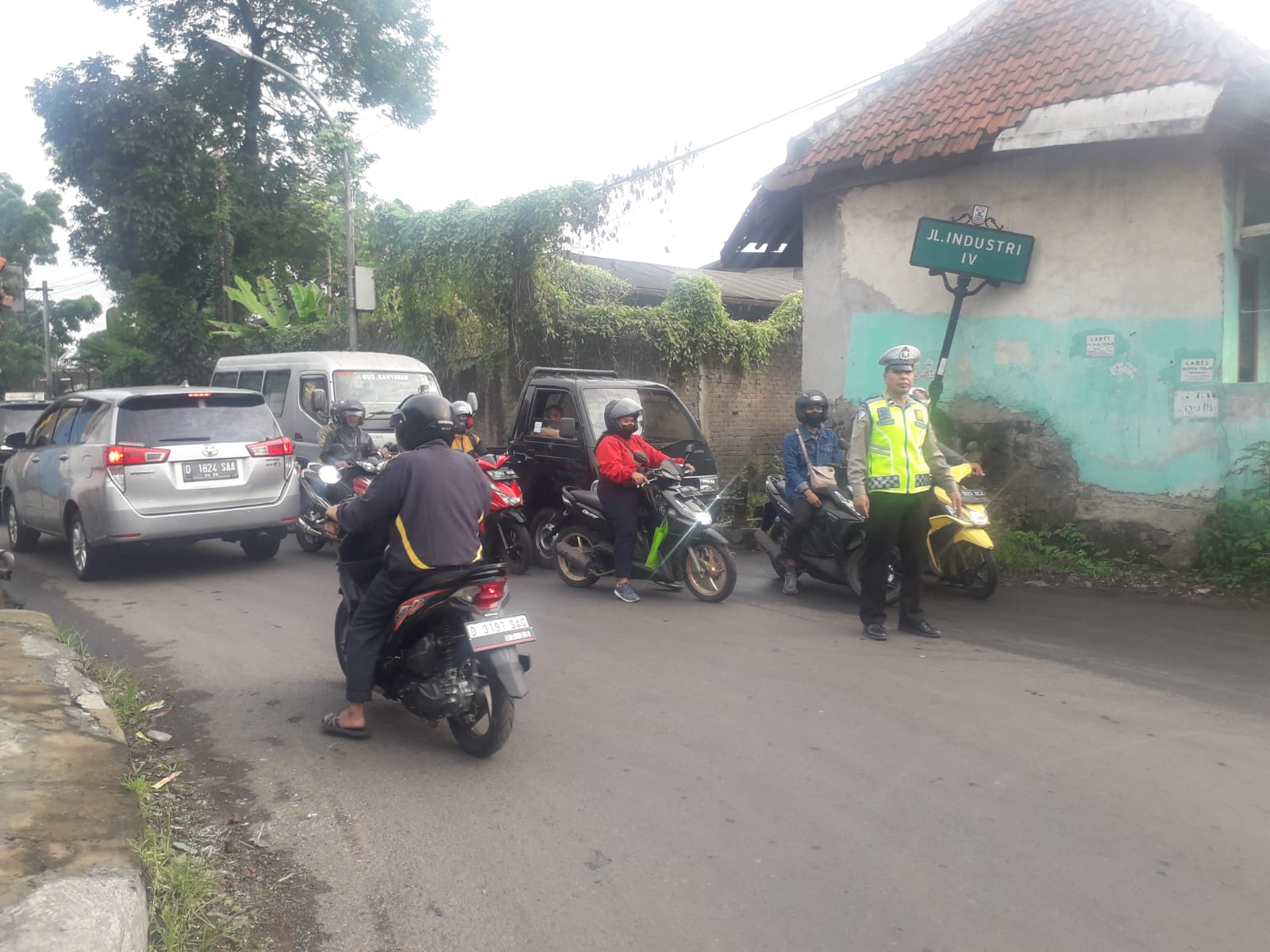 AIPDA Adi,BRIPKA Randy,AIPTU Napitupulu, AIPTU Wawan, AIPTU Rudi Dengan melaksanakan pengaturan lalulintas pagi di Pos1 PTG Cibaligo Dalam,Pos 2 Smkn 1 Cimahi , Pos 3, PTG Industri