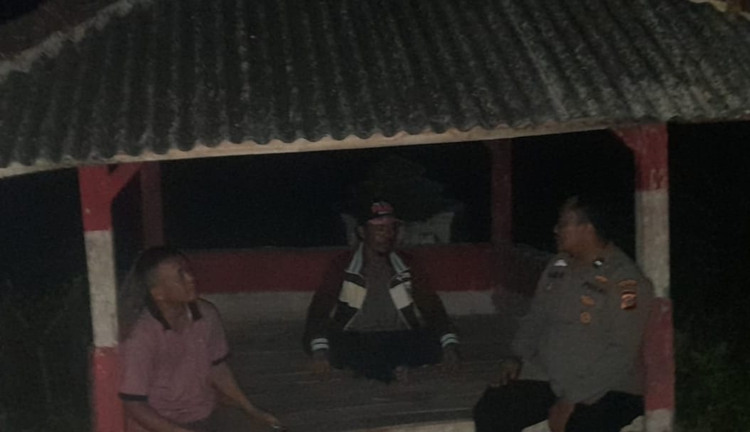 Karawang – Bhabinkamtibmas Polsek Pangkalan Polres Karawang Aipda Cecep Samsuri ngawangkong bersama masyarakat di Kampung Nambo Rt 012/004 Desa Kertasari, Kecamatan Pangkalan, Karawang, Rabu malam (10/5/2023).