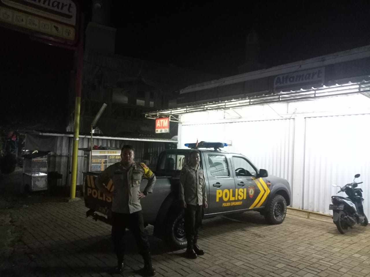 Anggota Polsek Cipeundeuy melaksanakan patroli preventif pada malam tadi dengan route di Depan Mapolsek – sekitar kantor Kecamatan Cipeundeuy – Pasar Cipeundeuy – Desa Cipeundeuy – Mapolsek Cipeundeuy.