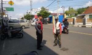 Giat Humanis Unit Lantas Polsek Banjar Pengaturan di Simpang Empat SMAN 1 Banjar
