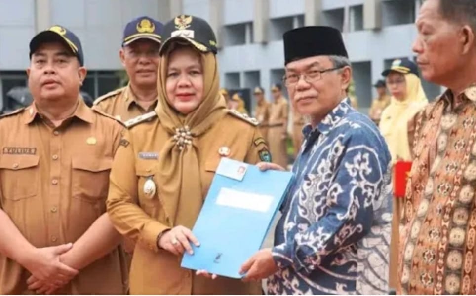 ReformasiAktual.Com//Muara Enim–Wakil Bupati (Wabup) Muara Enim, Ir. Hj. Sumarni, M.Si., Senin pagi (05/05) memimpin apel bulanan yang diikuti seluruh jajaran Aparatur Sipil Negera (ASN) Pemerintah Kabupaten Muara Enim di Halaman Kantor Bupati Muara Enim. Bersamaan dengan itu pula, Wakil Bupati didampingi Sekretaris Daerah Kab. Muara Enim, Ir. Yulius, M.Si., menyerahkan Surat Keputusan (SK) pensiun Pegawai Negeri Sipil (PNS), Dana Bantuan Pegawai Purnabakti Korpri, Kartu Tanda Penduduk (KTP) dan Kartu Keluarga (KK) berstatus pensiun kepada Staf Ahli Bupati Bidang Pemerintahan, Hukum dan Politik, H. Irawan Supmidi, S.Pd., S.Mn., M.Si., beserta beberapa perwakilan yang telah masuk masa purnabakti terhitung 1 Mei 2025 sebagai ASN Pemerintah Kabupaten Muara Enim.