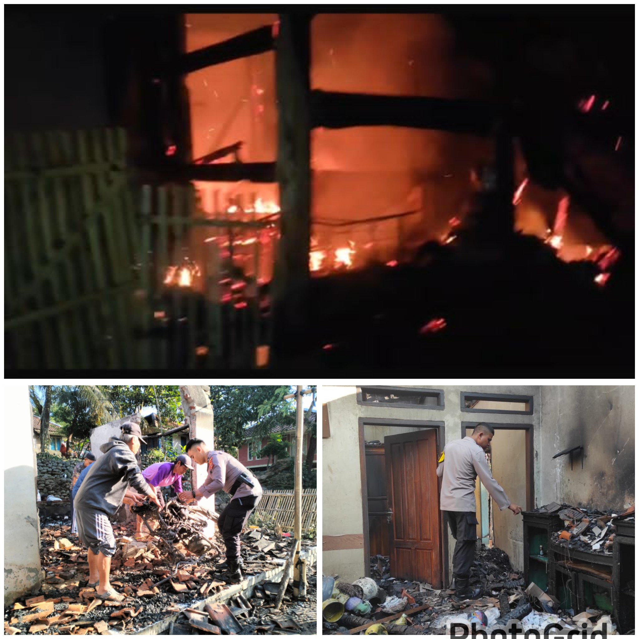 Kebakaran yang terjadi sekitar pukul 00.30 WIB tersebut menghanguskan rumah milik warga atas nama Sdr. Uju, Sdr. Dani, dan Sdri. Keha.