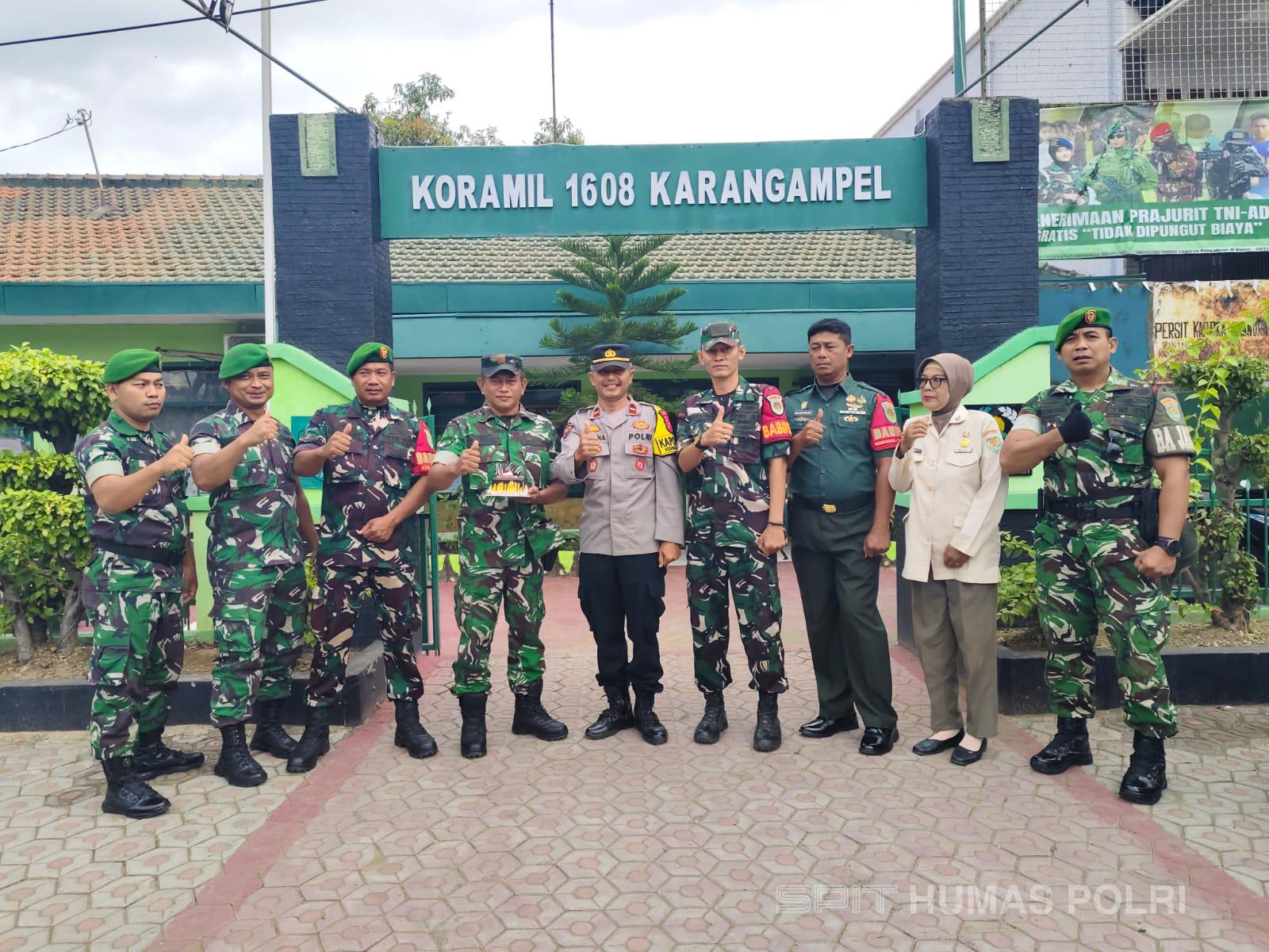 HUT ke-79 Kodam III/Siliwangi, Polsek Kedokanbunder Bawa Kue Ulang Tahun Untuk Koramil Karangampel