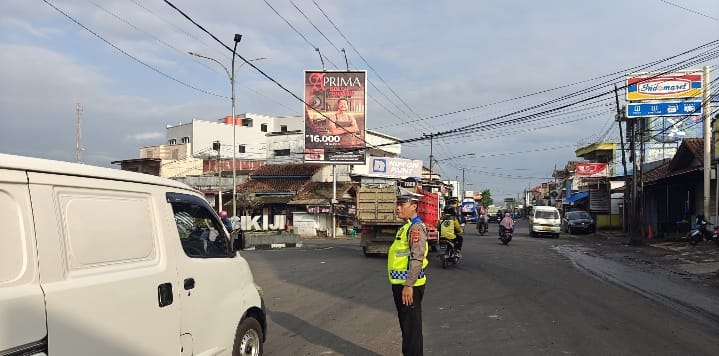 Ciptakan Kamseltibcar Lantas, Ps. Panit Lantas Polsek Cikijing Laksanakan Pengaturan Lalin di Simpang Tiga Cikijing