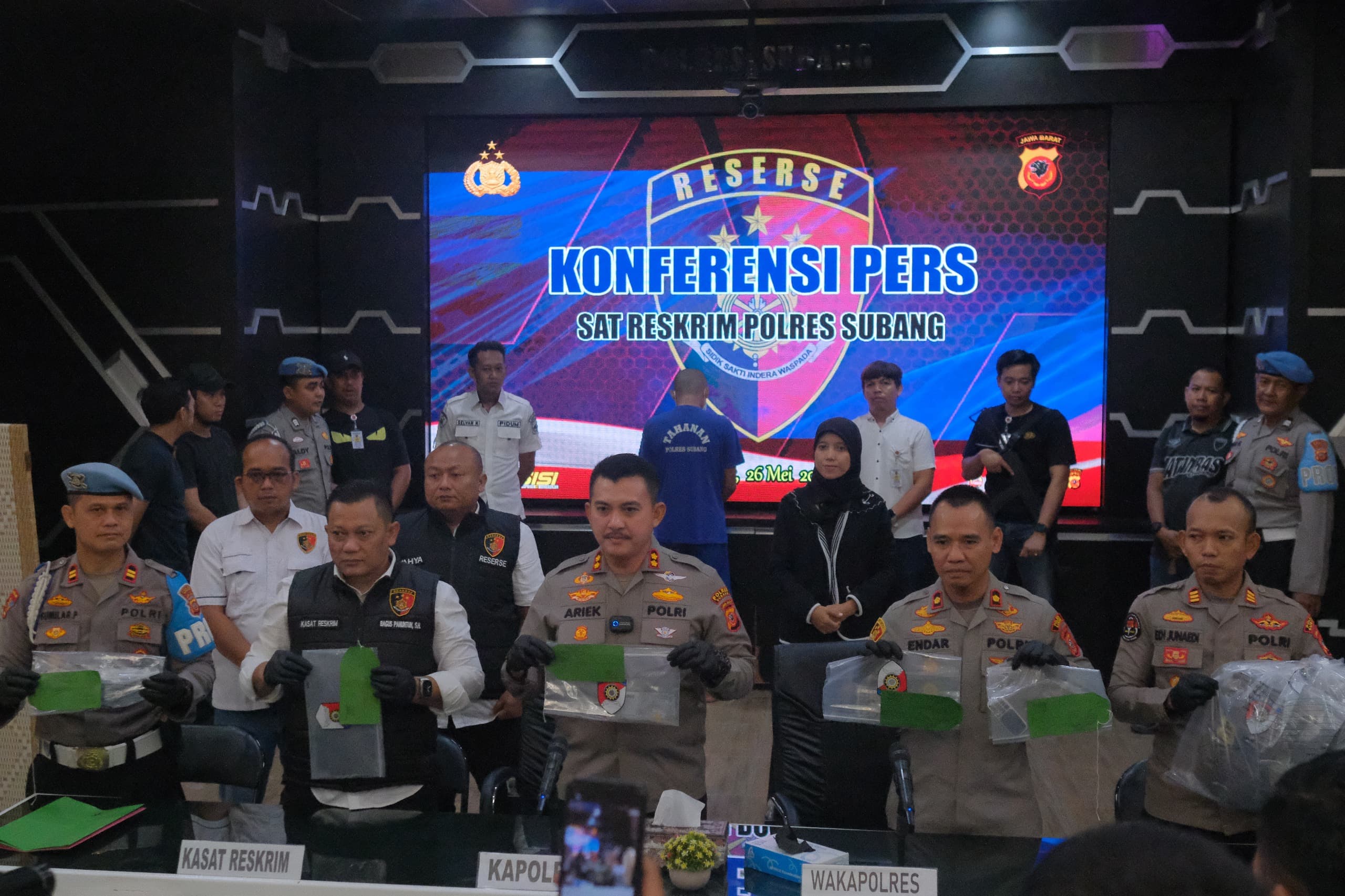 Reformasiaktual.com//Polres Subang menggelar kegiatan Press Release pengungkapan kasus pembunuhan berencana yang berhasil diungkap oleh Satuan Reserse Kriminal. Kegiatan dipimpin langsung oleh Kapolres Subang, AKBP Ariek Indra Sentanu, S.H., S.I.K., M.H., bertempat di Aula Patriatama Polres Subang, Senin (26/5/2025)