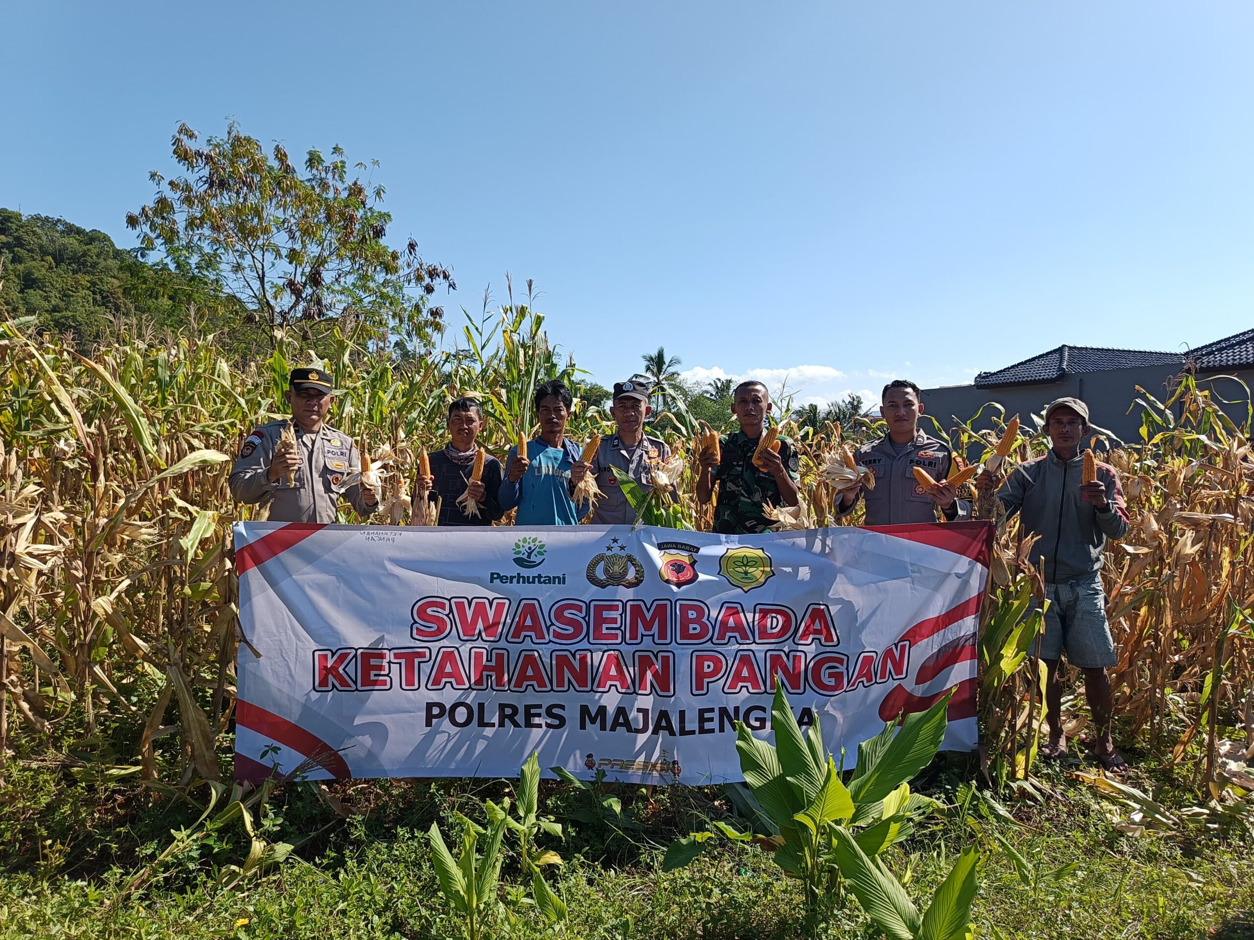 Dukung Ketahanan Pangan Polsek Cingambul, Panen Raya Jagung Bersama Masyarakat
