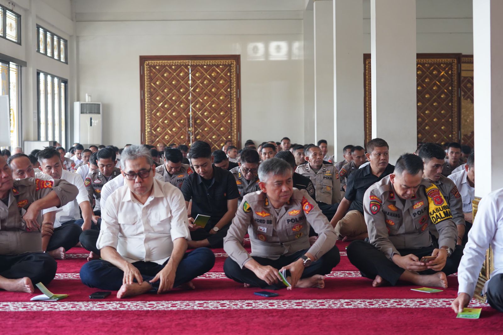 Kegiatan diawali dengan pembacaan ayat suci Al-Qur’an, dilanjutkan dengan tausiyah dan doa bersama. Pada kesempatan ini, tausiyah disampaikan oleh AKP Hasbi Ask Sidiqie B, S.H., yang mengangkat tema seputar pentingnya keikhlasan dan amanah dalam menjalankan tugas, serta menjaga integritas dan keteladanan sebagai anggota Polri di tengah masyarakat.