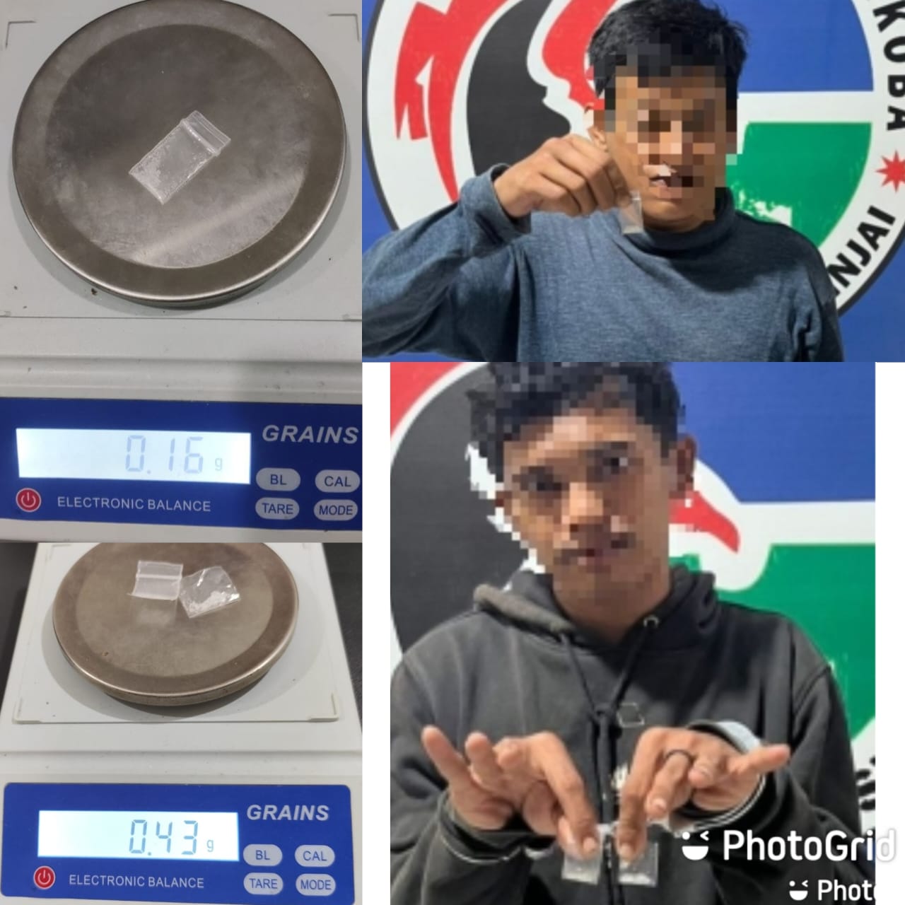 Selanjutnya pelaku bersama barang buktinya berupa satu sachet plastik klip yang diduga berisi Narkotika jenis sabu dengan berat bruto 0,16 gram dan satu buah handpone merek Realmi C15 berwarna biru.