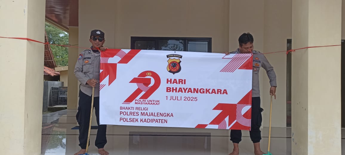 Majalengka – Dalam rangka menyambut Hari Ulang Tahun (HUT) Bhayangkara ke-79, Polsek Kadipaten Polres Majalengka Polda Jabar menggelar kegiatan bersih-bersih tempat ibadah. Kegiatan ini dilaksanakan oleh Aipda Wahyudin dan Bripka Bib Abi Musyadat di Masjid Al-Barokah, Blok Pasir, Desa Cipaku, Kecamatan Kadipaten, Kabupaten Majalengka, sebagai bentuk kepedulian Polri terhadap lingkungan dan rumah ibadah. Senin (16/6).