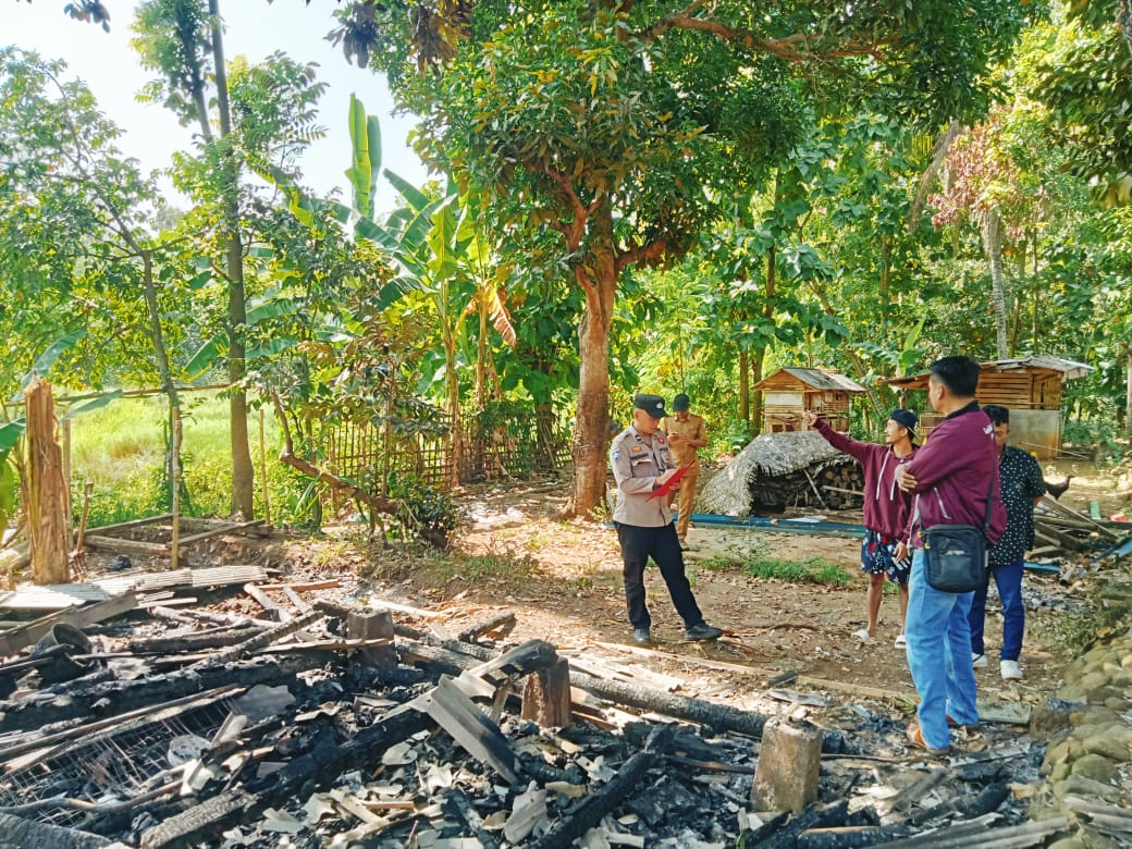 “Diduga, kebakaran di picu oleh korsleting listrik yang menjalar ke dinding rumah yang terbuat dari anyaman bambu, sehingga api dengan cepat menghanguskan seluruh bangunan beserta isinya dan Kerugian materi akibat kebakaran ini diperkirakan mencapai Rp5.000.000..” ujar Kapolsek.