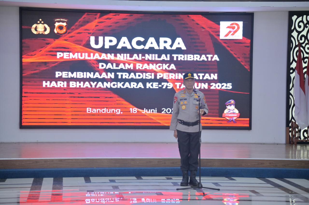 Kapolda Jabar menegaskan pentingnya menjaga dan mengimplementasikan nilai-nilai Tribrata dalam setiap pelaksanaan tugas, demi mewujudkan Polri yang presisi, profesional, dan humanis.