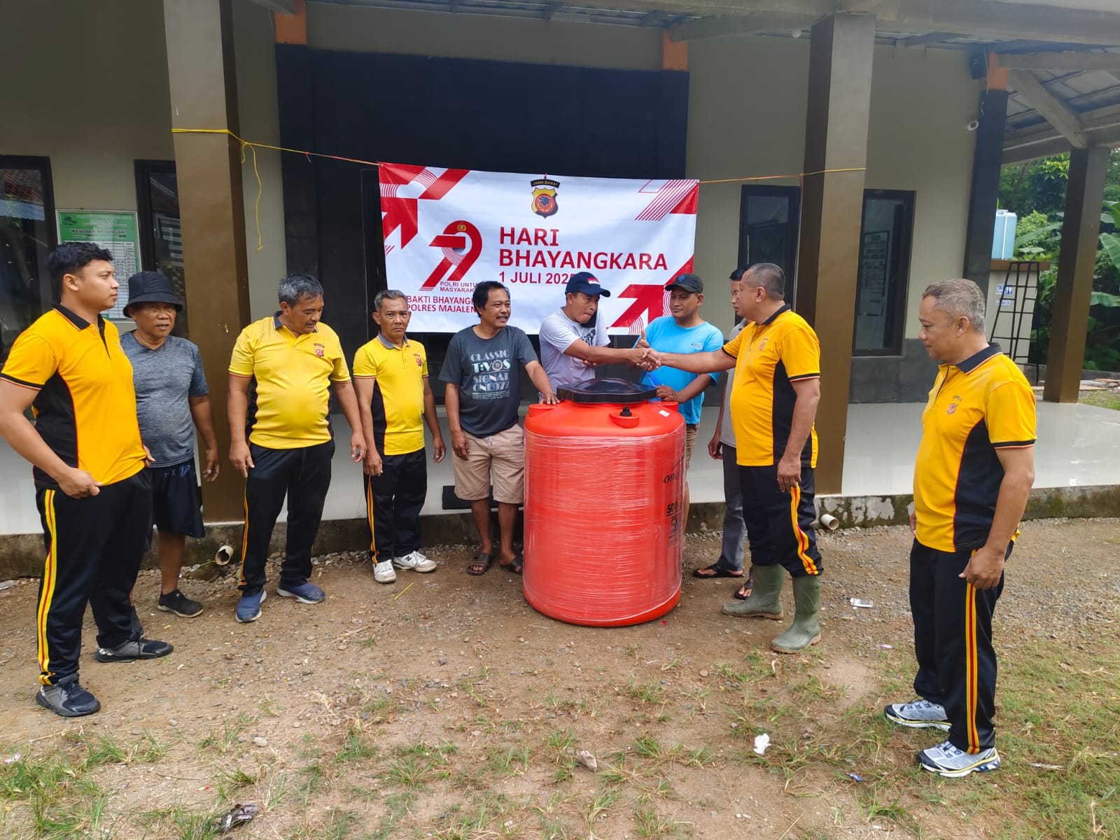 Anggota Bagren Polres Majalengka Laksanakan Keja Bakti dan Serahkan Bantuan Torn Air untuk Masjid Al-Latif