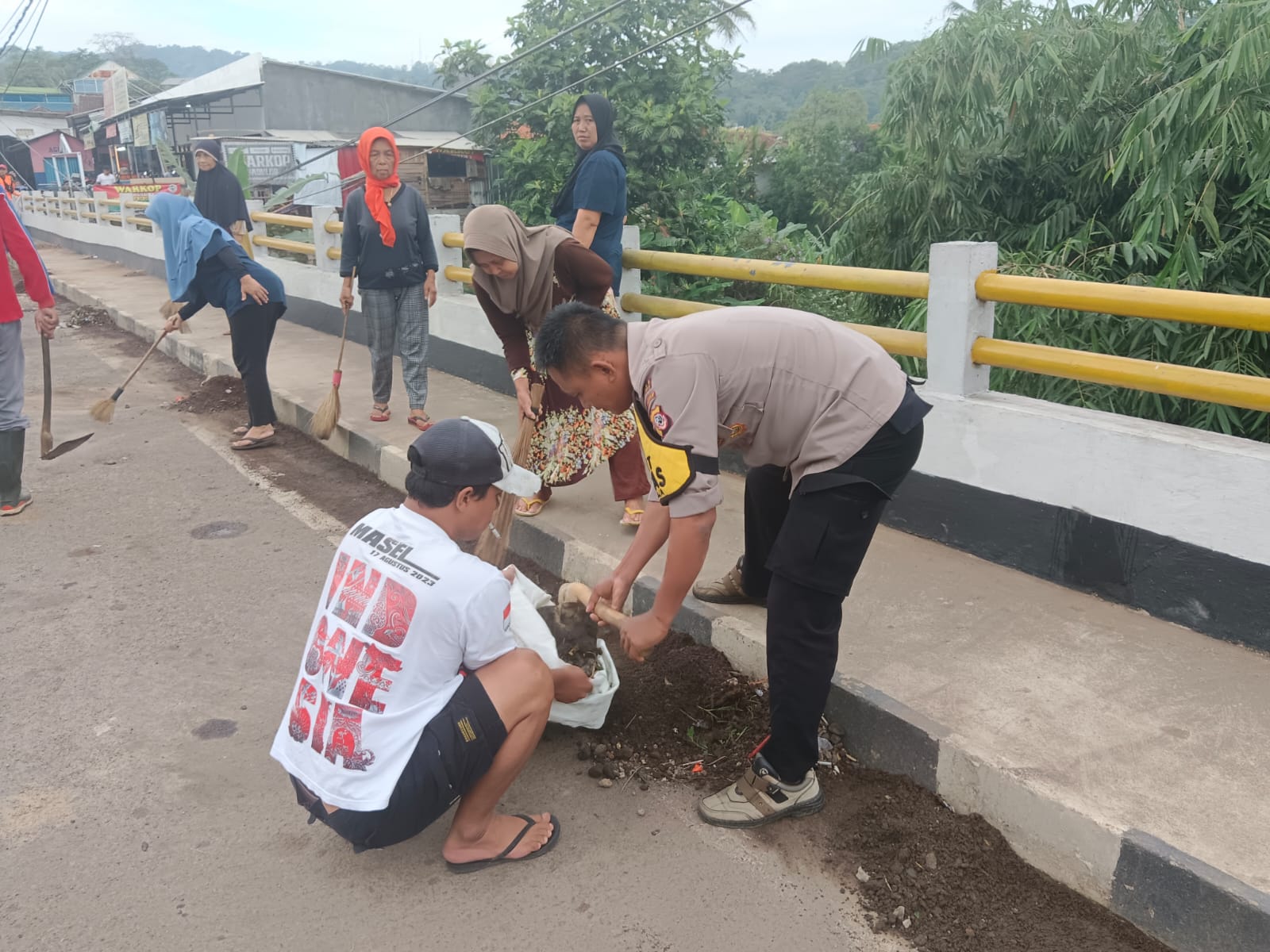 Kegiatan tersebut dipimpin langsung oleh Kapolsek Maja dan diikuti oleh sejumlah personel Polsek serta warga setempat. Mereka bahu membahu membersihkan lingkungan sekitar jembatan dari sampah dan rumput liar demi menciptakan lingkungan yang bersih, nyaman, dan aman.