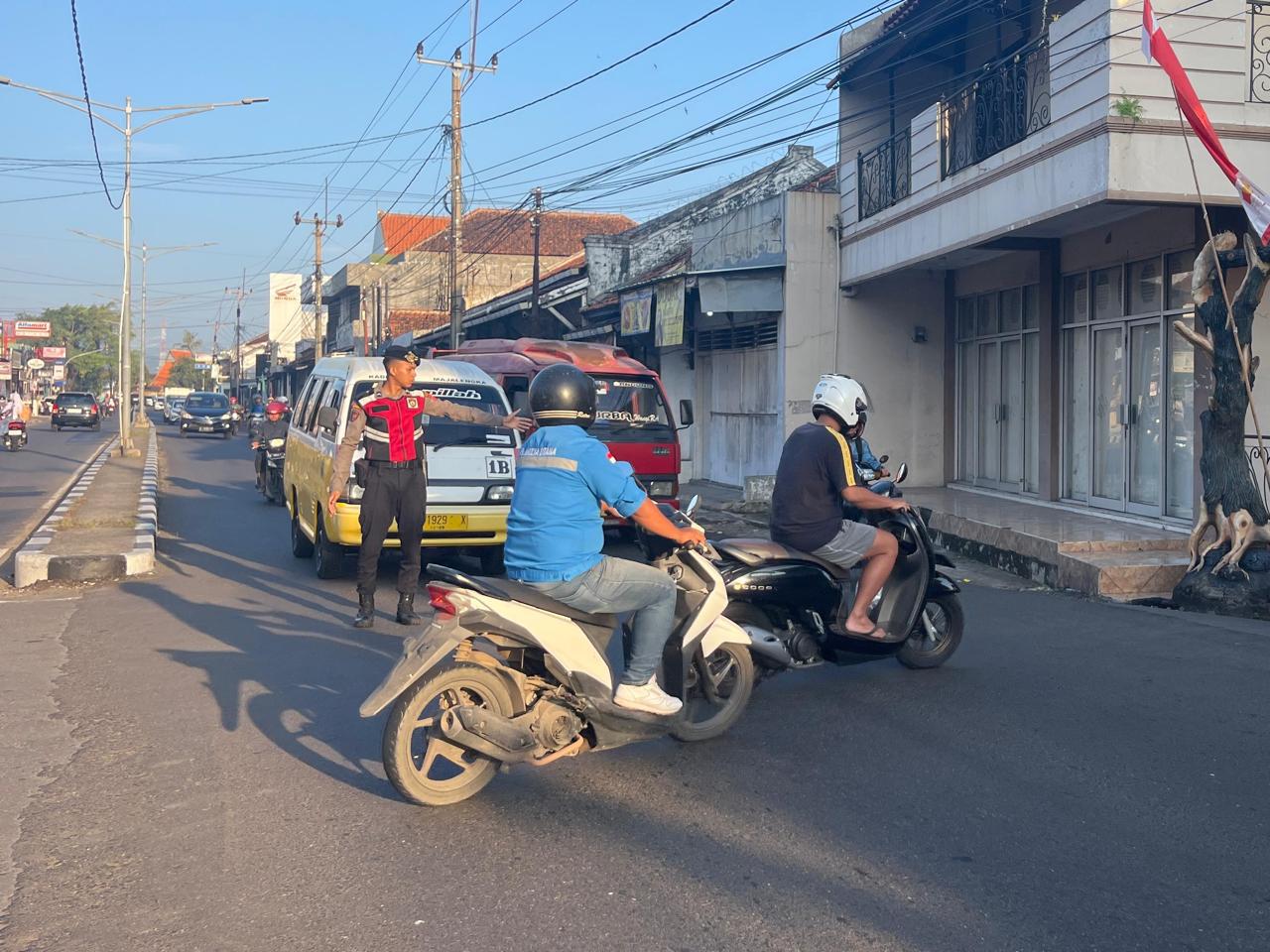 Majalengka – Dalam rangka menciptakan situasi keamanan dan ketertiban masyarakat (kamtibmas) yang kondusif, Satuan Samapta Polres Majalengka melaksanakan kegiatan pengaturan lalu lintas pada pagi hari di sejumlah titik rawan kemacetan dan keramaian di wilayah hukum Polres Majalengka.
