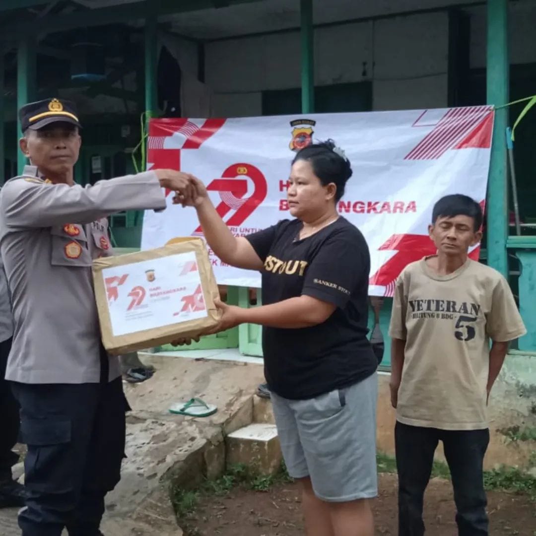 Majalengka, Dalam rangka menyambut Hari Bhayangkara ke-79, Polsek Malausma Polres Majalengka Polda Jabar menggelar kegiatan Bansos dengan menyalurkan bantuan social berupa paket sembako kepada warga kurang mampu.