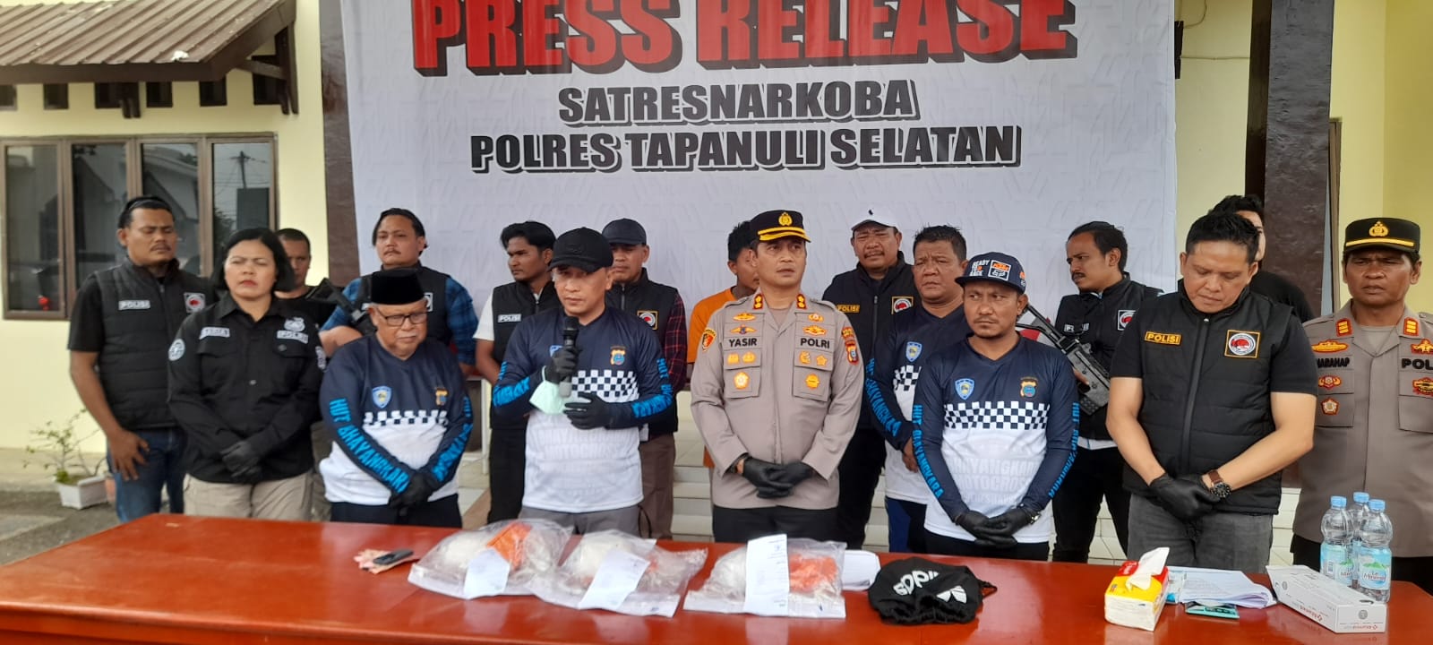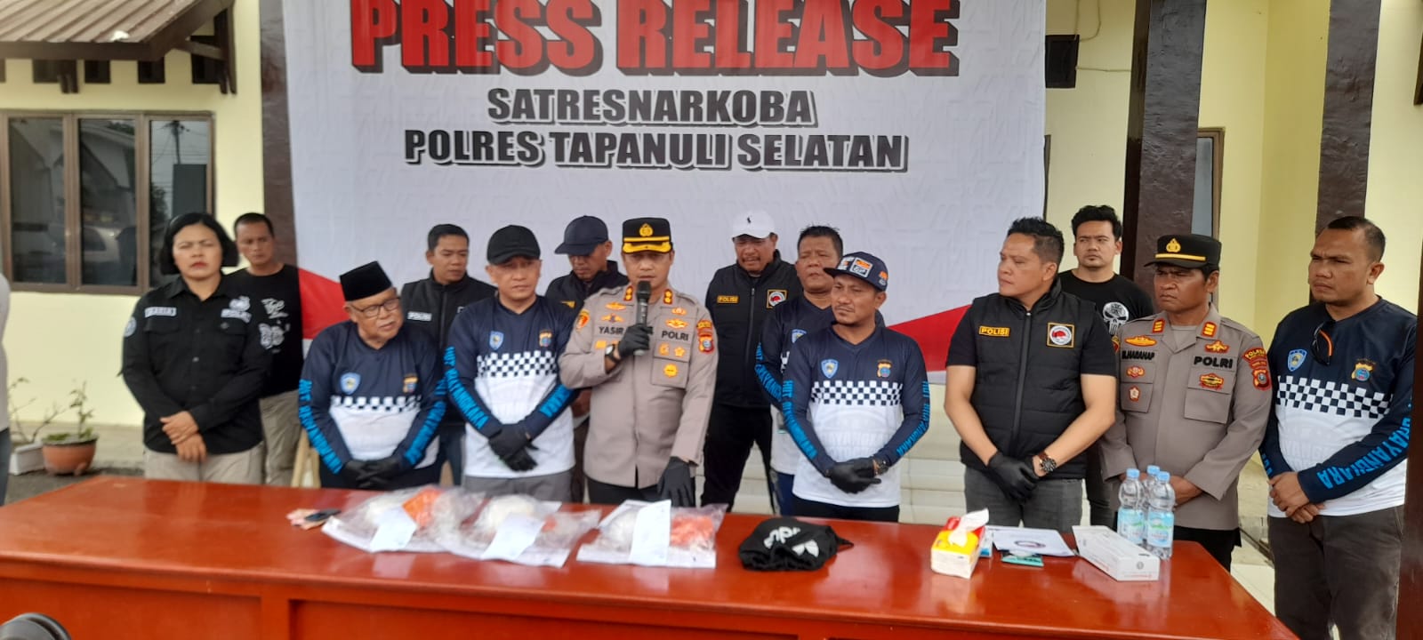Paluta,Reformasi Aktual.com– Dalam upaya memperkuat pemberantasan narkotika, Polres Tapanuli Selatan (Tapsel) berhasil mengungkap peredaran narkoba jenis sabu seberat 3 kilogram di wilayah hukum Kabupaten Padang Lawas Utara. Press release resmi dipimpin langsung oleh Kapolres Tapsel, AKBP Yasir Ahmadi, SH, MH, di Mapolsek Padangbolak pada Sabtu siang, 21 Juni 2025.