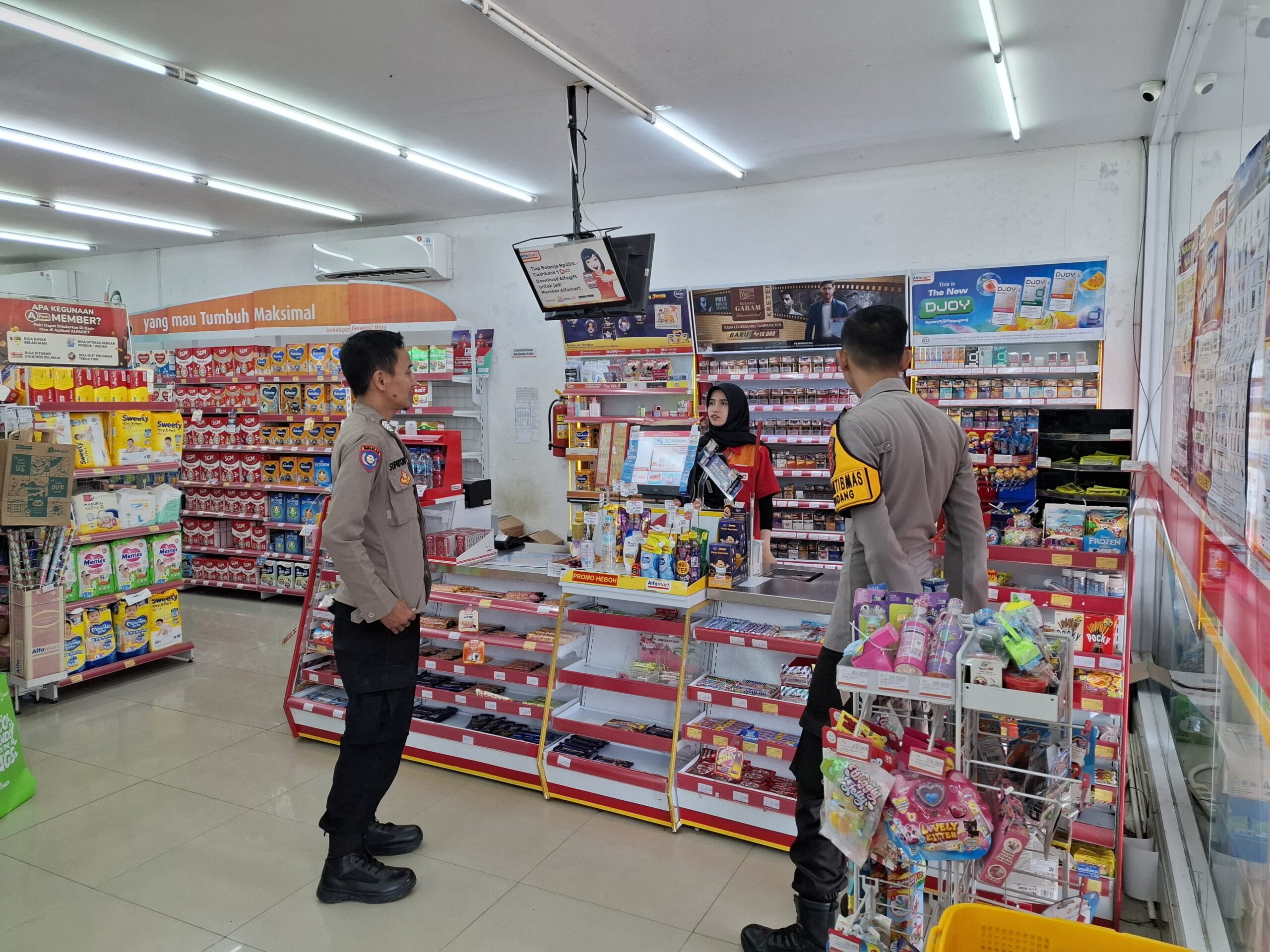 Majalengka – Dalam rangka menciptakan situasi yang aman dan kondusif serta mengantisipasi tindak kriminalitas C3 (Curat, Curas dan Curanmor), Bhabinkamtibmas Polsek Cikijing Polres Majalengka Polda Jabar, Bripka Achmad Supriyono, bersama Briptu Asep Indra menyambangi minimarket Alfamart yang berada di Desa Cidulang, Kecamatan Cikijing, Kabupaten Majalengka, Senin (23/06/2025).