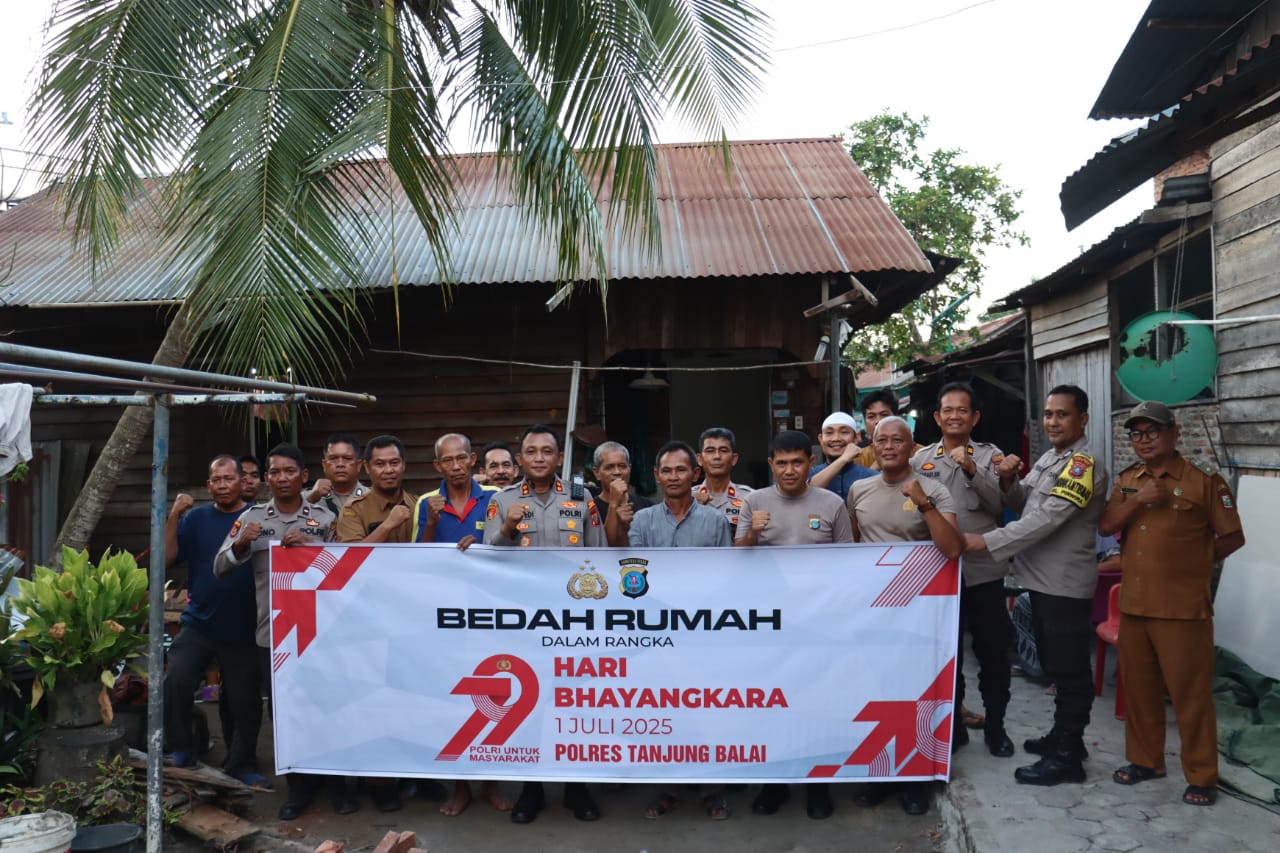 MENYAMBUT HUT BHAYANGKARA KE 79 POLRES TANJUNG BALAI LAKSANAKAN BAKSOS BEDAH RUMAH WARGA SEBAGAI BENTUK KEPEDULIAN