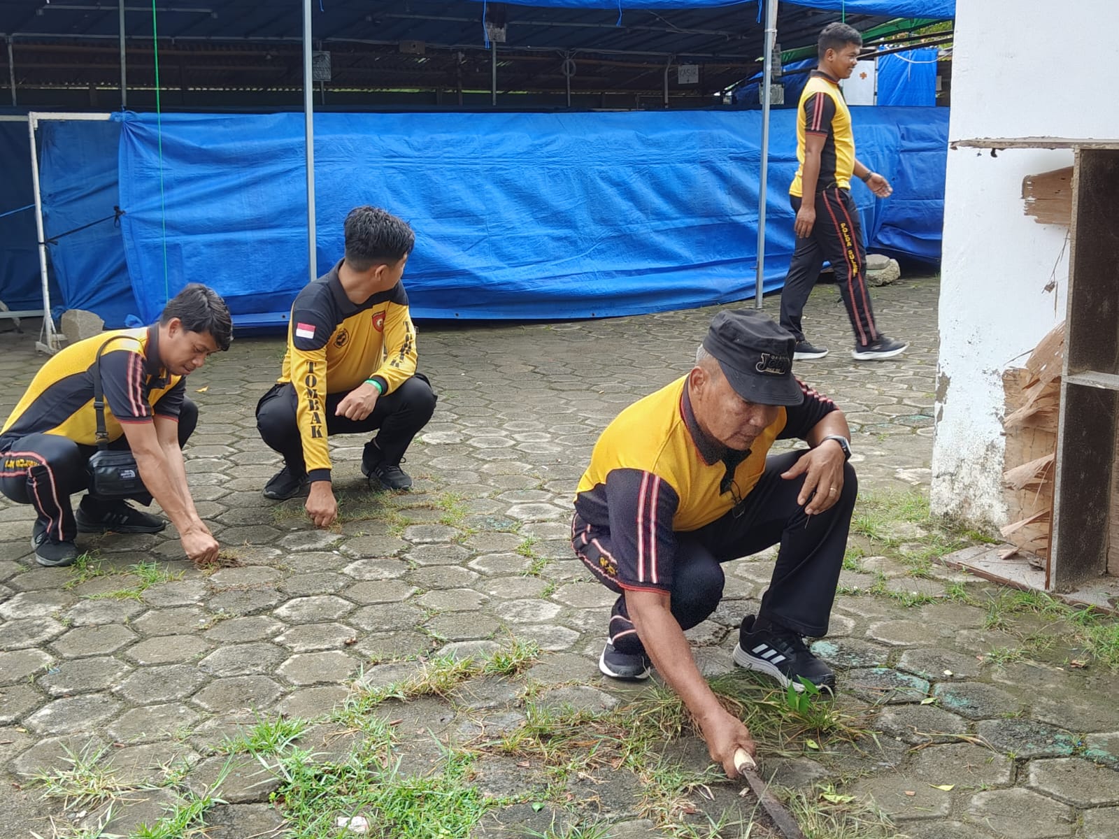 Para personel gabungan fungsi Polres Sinjai yang terlibat dalam kegiatan ini tampak antusias dan kompak membersihkan area masjid.