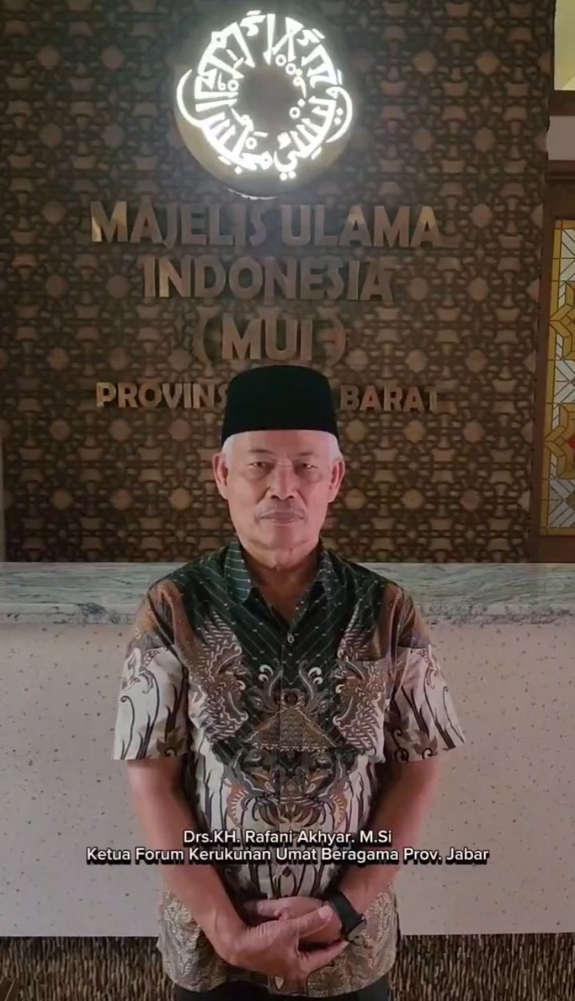 “Assalamu’alaikum Wr.Wb. Saya KH. Rafani Akhyar, Ketua Forum Kerukunan Umat Beragama FKUB Jawa Barat. Dengan ini mengucapkan selamat Hari Ulang Tahun Bhayangkara ke-79. Semoga Kepolisian Negara Republik Indonesia tetap jaya dan tetap diberikan kemampuan di dalam melaksanakan tugas penegakan hukum, menjaga ketertiban dan keamanan masyarakat serta senantiasa dekat di hati masyarakat,” ujar KH. Rafani Akhyar, Kamis (26/6/2025)