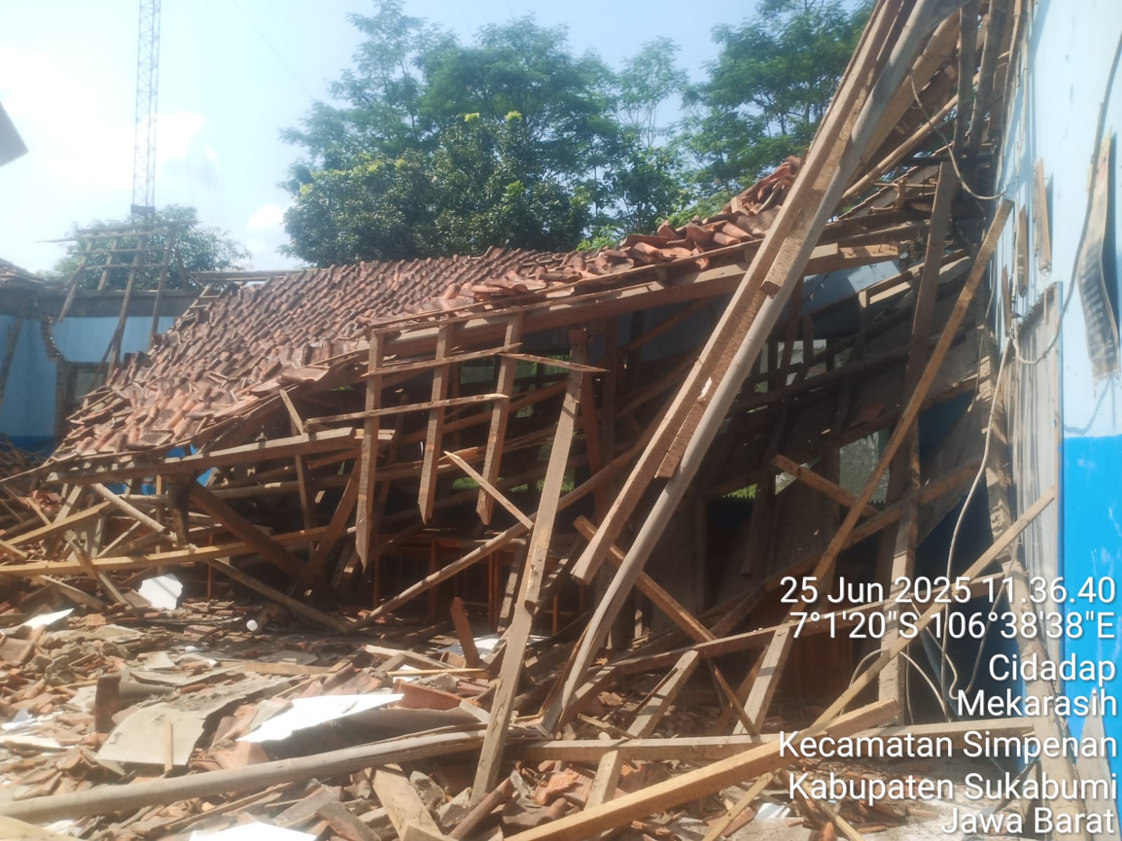 SUKABUMI – Peristiwa memilukan terjadi di Desa Mekarasih, Kecamatan Simpenan, Kabupaten Sukabumi, Jawa Barat. Sebuah ruang kelas milik SMPN 4 Satu Atap (Satap) ambruk pada Selasa pagi (24/6/2025) sekitar pukul 06.30 WIB, tepat saat siswa tengah menjalani masa liburan sekolah.