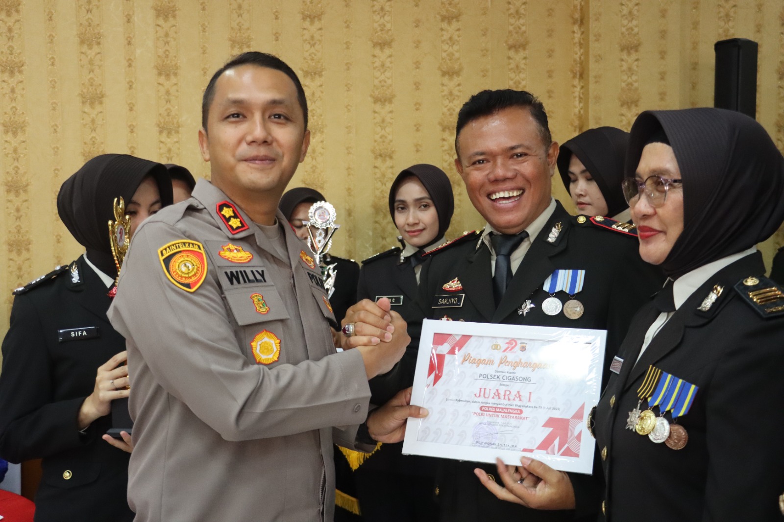 Majalengka, Dalam rangka memperingati Hari Bhayangkara ke-79, AKP Sarjiyo, S.E., M.H., C.PHR, selaku Kapolsek Cigasong, kembali menorehkan prestasi membanggakan dengan meraih Juara 1 Lomba Kebersihan Mako tingkat Polres Majalengka Tahun 2025.