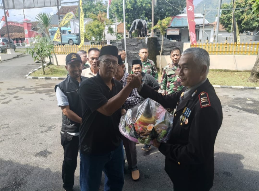 Dalam suasana hangat dan akrab, Camat bersama Danramil beserta Forum Kuwu Leuwimunding menyerahkan bingkisan ucapan selamat Hari Bhayangkara ke-79 kepada Kapolsek Leuwimunding.