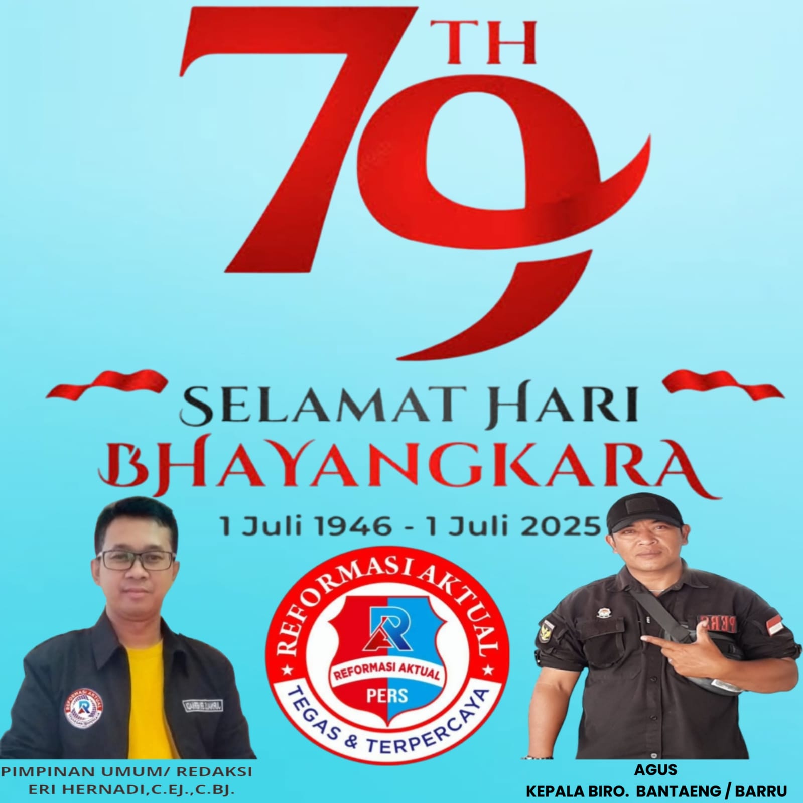 Pimpinan Media Reformasi Aktual & Biro Bantaeng Mengucapkan Selamat Hari Bhayangkara ke-79