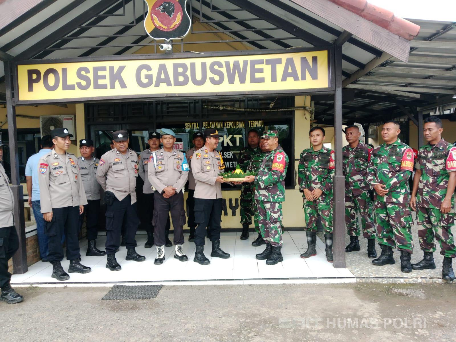 Kedatangan dari Koramil Gabuswetan yang dipimpin langsung oleh Danramil Kapten Inf Arifin bersama Anggota diterima dan disambut langsung oleh Kapolsek Gabuswetan AKP Agus Kristiana bersama Anggota Polsek Gabuswetan.