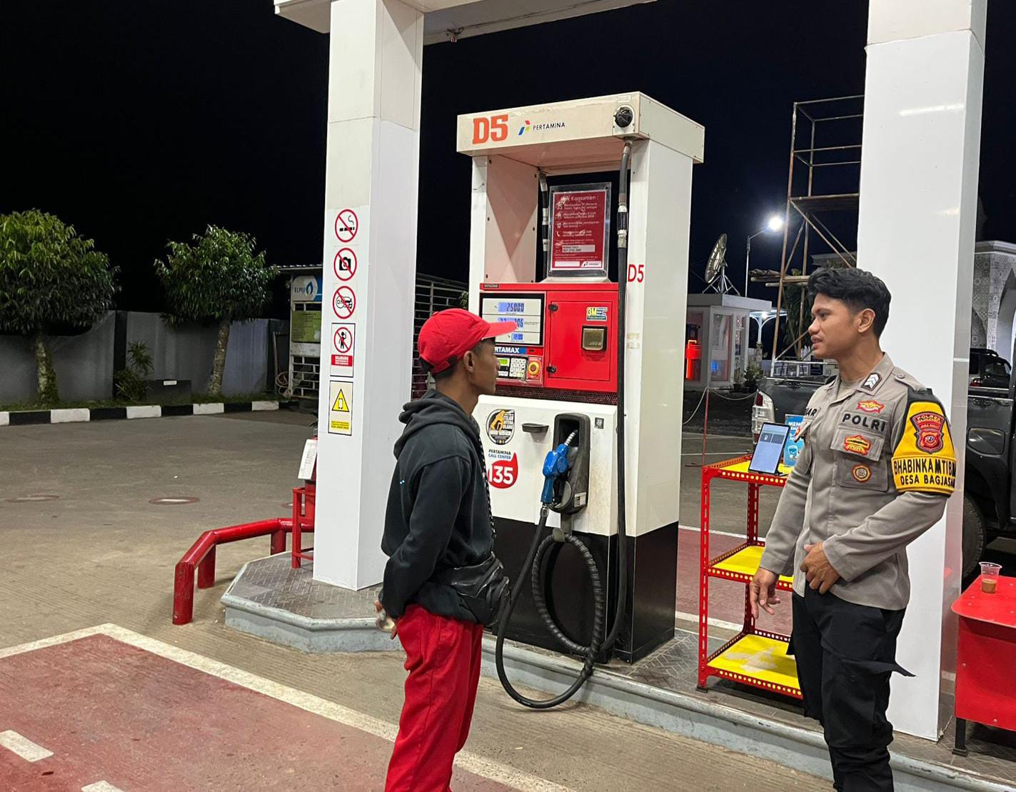 Patroli Kewilayahan, Bhabinkamtibmas Polsek Cikijing Beri Imbauan Kepada Karyawan SPBU