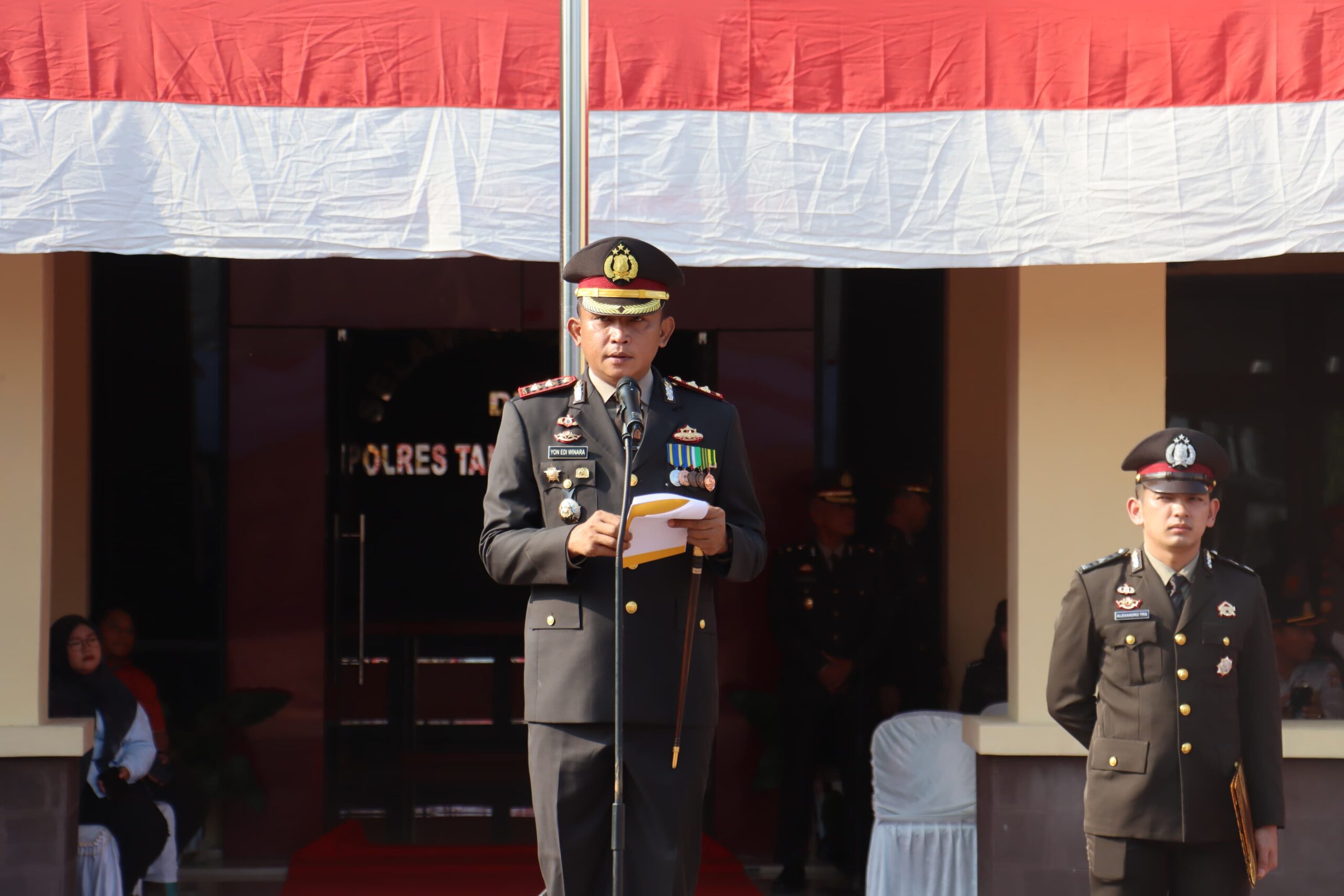Dalam amanatnya, Kapolres menyampaikan bahwa Hari Bhayangkara bukan hanya sekadar seremonial, namun menjadi momentum bagi Polri untuk terus berbenah, bertransformasi, dan semakin dekat dengan masyarakat. “Polri dihadapkan pada tantangan yang semakin kompleks di era digital saat ini. Oleh sebab itu, Polri harus mampu menjadi institusi yang prediktif, responsif, dan transparan dalam melayani masyarakat,” ucap AKBP Yon Edi Winara.