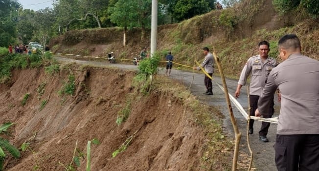 Sinjai – Guna mengantisipasi potensi kecelakaan akibat kondisi jalan yang rawan longsor, Polsek Bulupoddo Polres Sinjai memasang tanda peringatan berupa garis polisi di ruas jalan Desa Bulutellue, Kecamatan Bulupoddo, Kabupaten Sinjai. (5/7/2025).