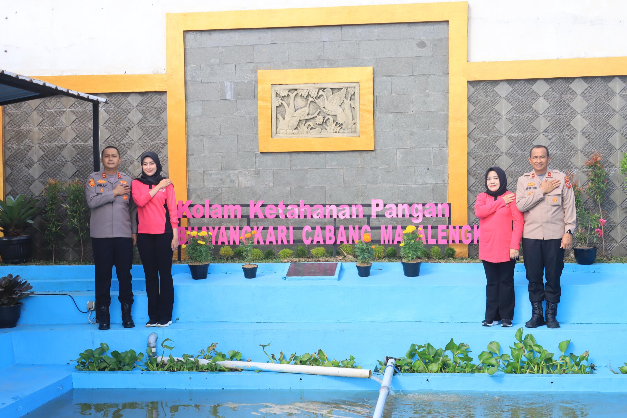 Dalam kegiatan ini, Ketua Bhayangkari Cabang Majalengka Ny.Tria Willy Andrian didampingi Kapolres Majalengka memimpin peresmian dan Penandatanganan Prasasti Renovasi Kolam Ketahanan Pangan Bhayangkari Cabang Majalengka serta pelepasan sebanyak 1.000 bibit ikan nila dan ikan mas ke dalam kolam ikan di Kolam lingkungan Polres Majalengka.