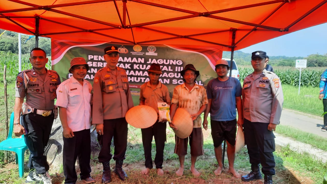 Majalengka, – Dalam rangka mendukung ketahanan pangan nasional dan pemanfaatan lahan perhutanan sosial, Kapolsek Leuwimunding AKP Kenedy Joko Lelono bersama unsur Forum Komunikasi Pimpinan Kecamatan (Forkopimcam) melaksanakan kegiatan Penanaman Jagung Serentak Kuartal III di Desa Parungjaya, Kecamatan Leuwimunding, Kabupaten Majalengka.