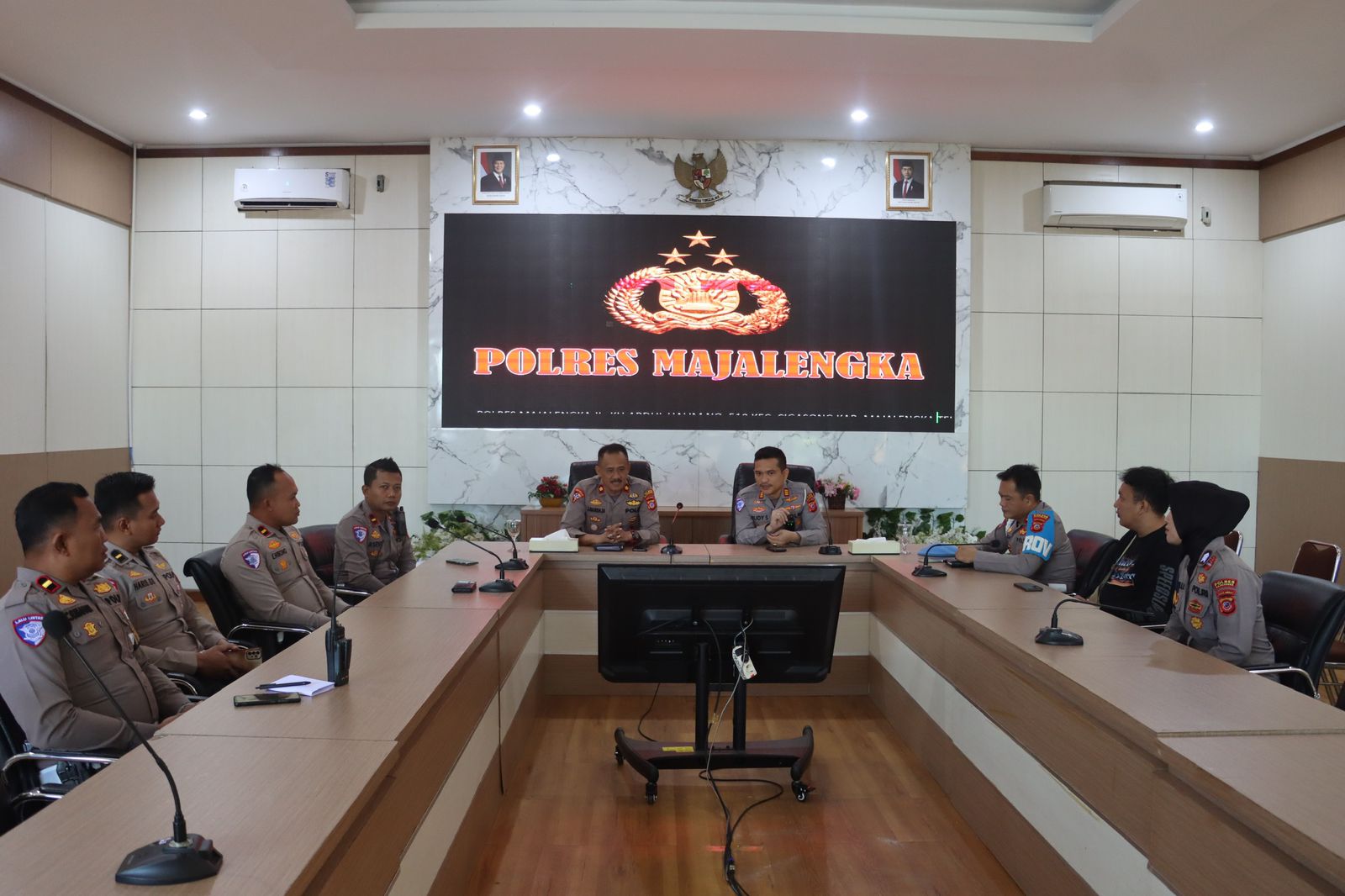 Majalengka, Kepolisian Resor Majalengka mengikuti Latihan Pra Operasi Patuh Lodaya 2025 melalui Zoom Meeting yang diselenggarakan oleh Ditlantas Polda Jabar bersama Polres Jajaran, yang bertempat di Aula Sindangkasih Polres Majalengka, Kamis (10/7/2025).