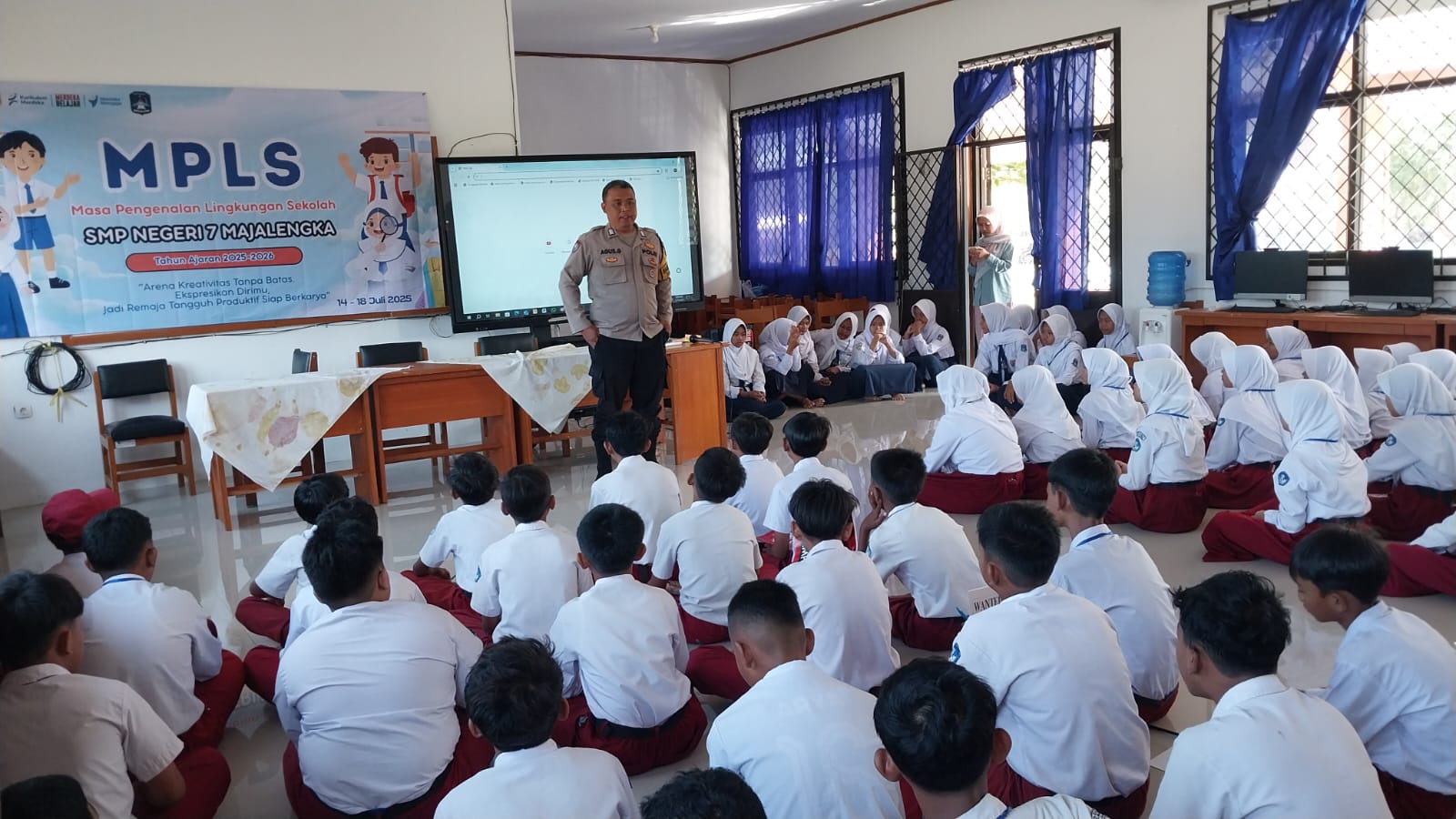 Majalengka – Masa Pengenalan Lingkungan Sekolah (MPLS) bagi siswa baru tahun ajaran 2025/2026 di SMP Negeri 7 Majalengka berlangsung penuh makna. Salah satu agenda menarik dalam kegiatan yang digelar pada Selasa (15/7/2025) ini adalah penyuluhan dari pihak kepolisian yang membahas pentingnya tertib berlalu lintas dan pencegahan kenakalan remaja.
