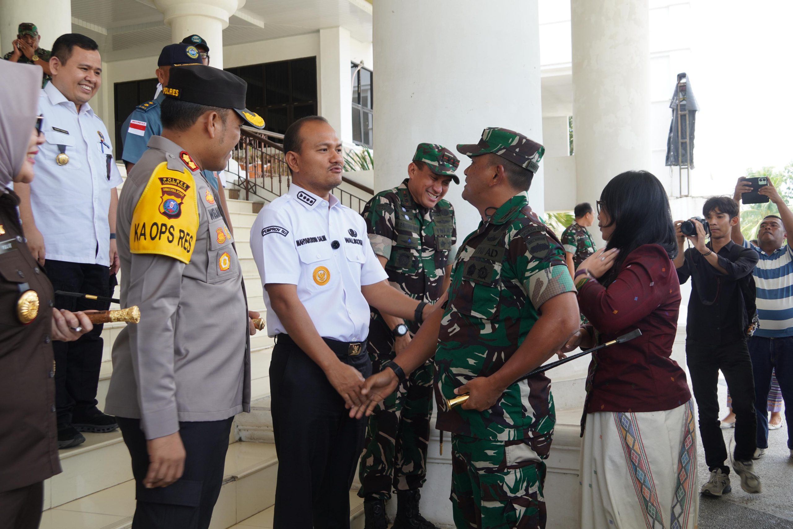 Wali Kota Tanjungbalai, Mahyaruddin Salim didampingi Ketua TP-PKK Ny Mashandayani Mahyaruddin beserta Forkopimda menerima kunjungan kerja (kunker) dan silaturahmi Danrem 022/PT, Kolonel Inf. Agus Supriono beserta rombongan di Aula Sutrisno Hadi, Kantor Wali Kota Tanjungbalai, Rabu (23/7/2025).